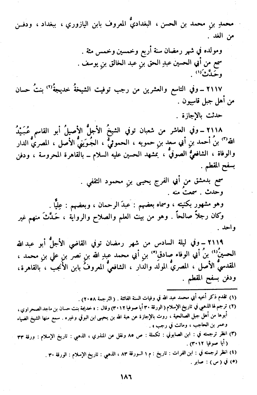 2117 - وفي التاسع والعشرين من رجب توفيت الشيخة خديجة بنت حسان من أهل جبل قاسيون.