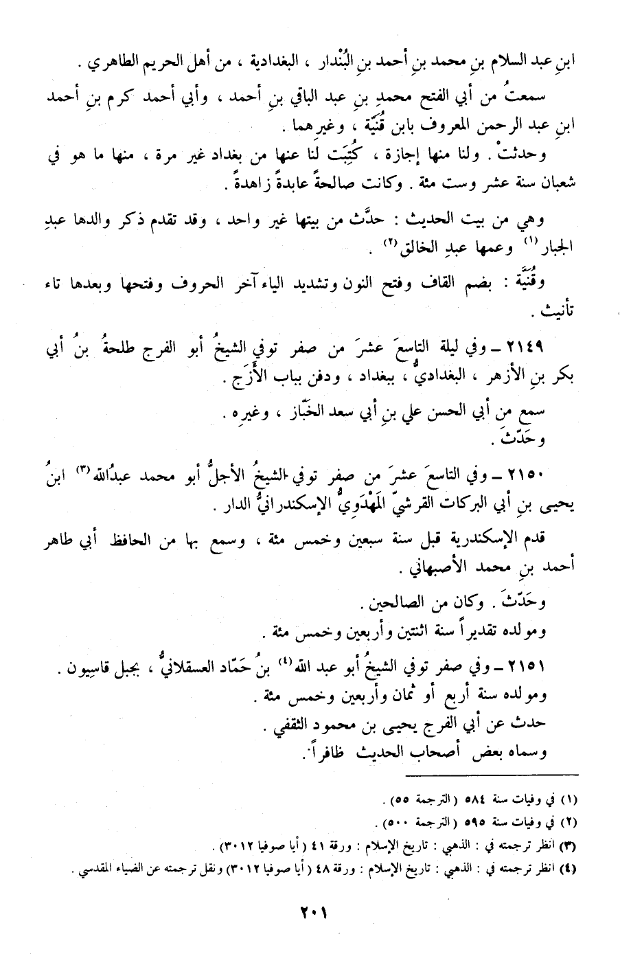 2149 - وفي ليلة التاسع عشر من صفر توفي الشيخ أبو الفرج طلحة بن أبي بكر بن الأزهر، البغدادي، ببغداد، ودفن بباب الأزج.