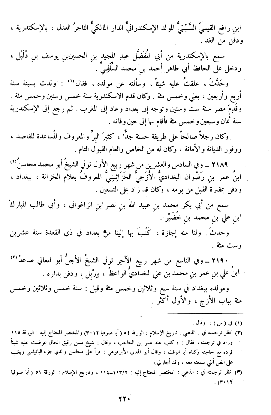 2189 - وفي السادس والعشرين من شهر ربيع الأول توفي الشيخ أبو محمد محاسن بن عمر بن رضوان البغدادي الأزجي الخزائني المعروف بغلام الخزانة، ببغداد، ودفن بمقبرة الفيل من يومه، وكان قد زاد على التسعين.