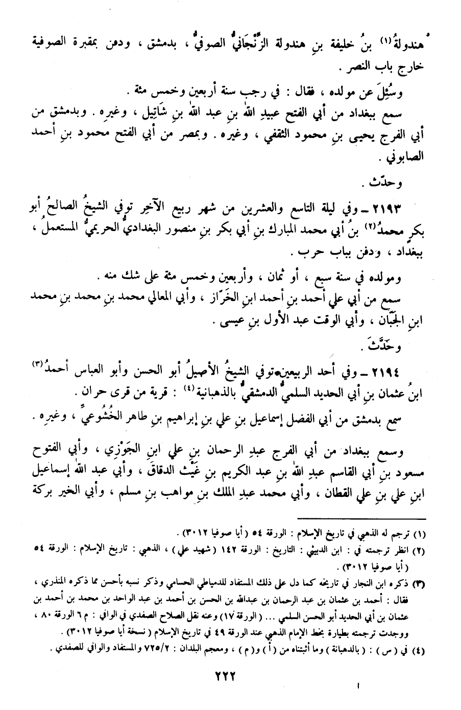 2194 - وفي أحد الربيعين توفي الشيخ الأصيل أبو الحسن وأبو العباس أحمد بن عثمان بن أبي الحديد السلمي الدمشقي بالذهبانية: قرية من قرى حران.