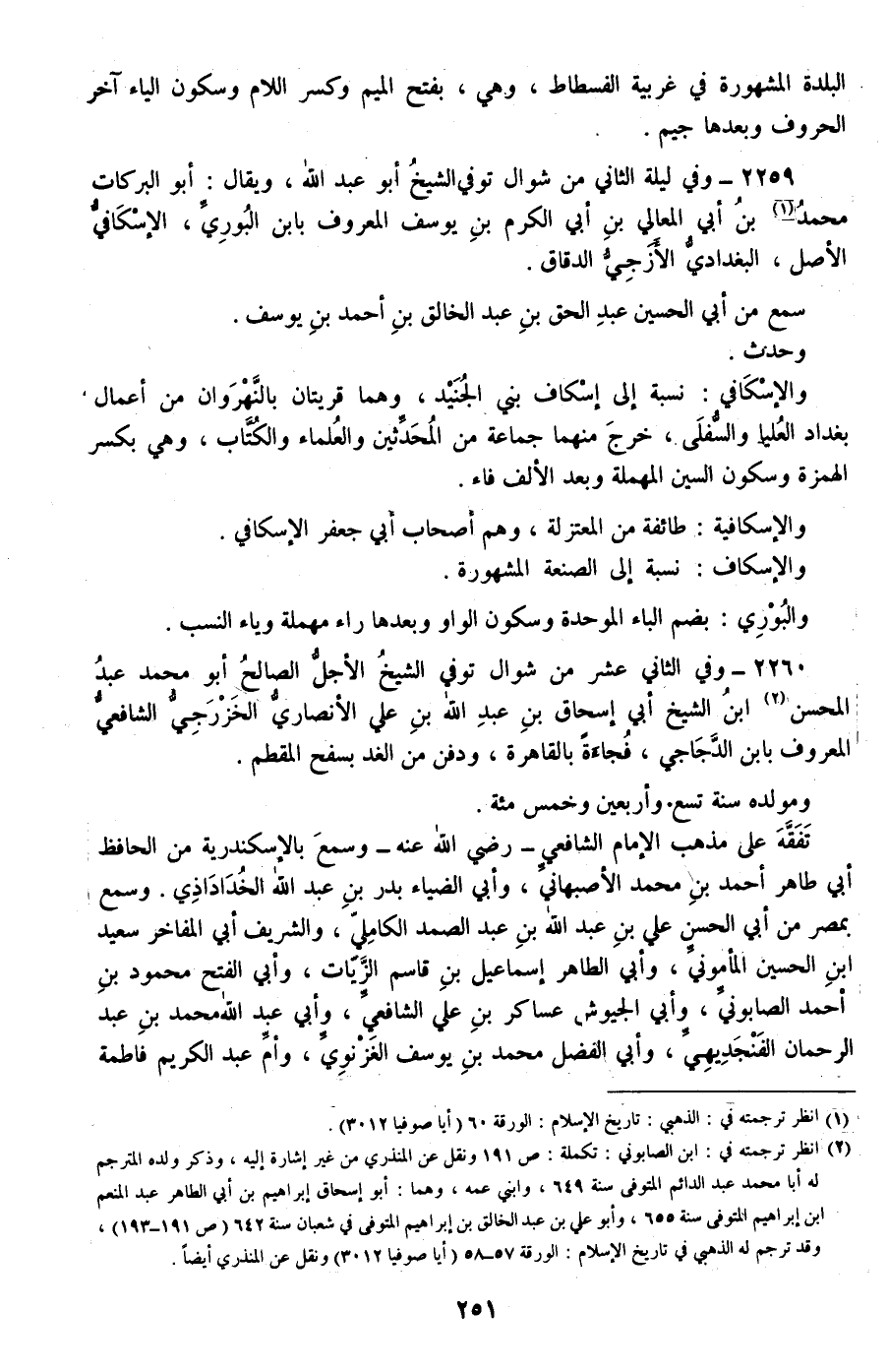 2259 - وفي ليلة الثاني من شوال توفي الشيخ أبو عبد الله، ويقال: أبو البركات محمد بن أبي المعالي بن أبي الكرم بن يوسف المعروف بابن البوري، الإسكافي الأصل، البغدادي الأزجي الدقاق
