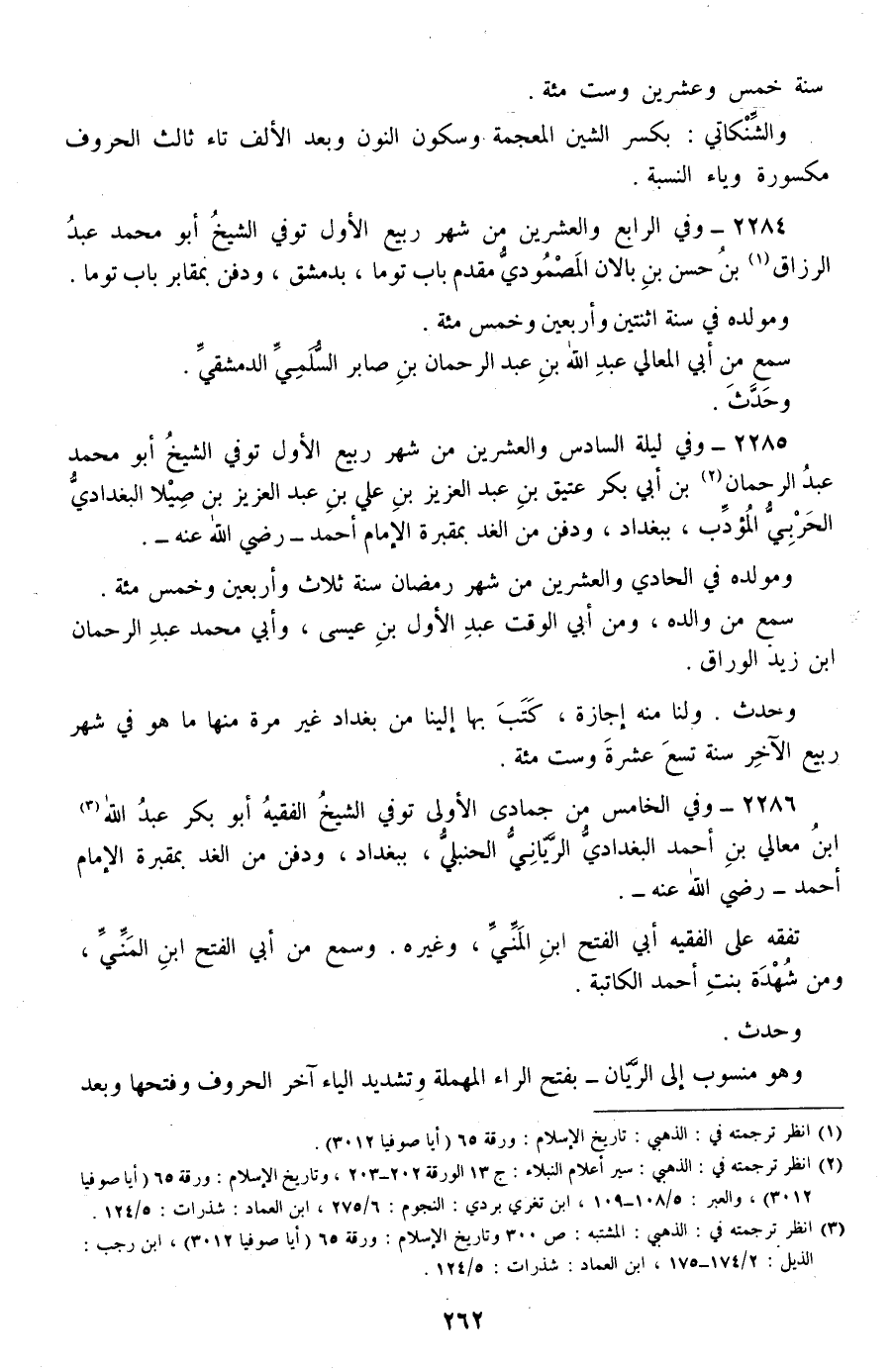 2285 - وفي ليلة السادس والعشرين من شهر ربيع الأول توفي الشيخ أبو محمد عبد الرحمان بن أبي بكر عتيق بن عبد العزيز بن علي بن عبد العزيز بن صيلا البغدادي الحربي المؤدب، ببغداد، ودفن من الغد بمقبرة الإمام أحمد -رضي الله عنه-.