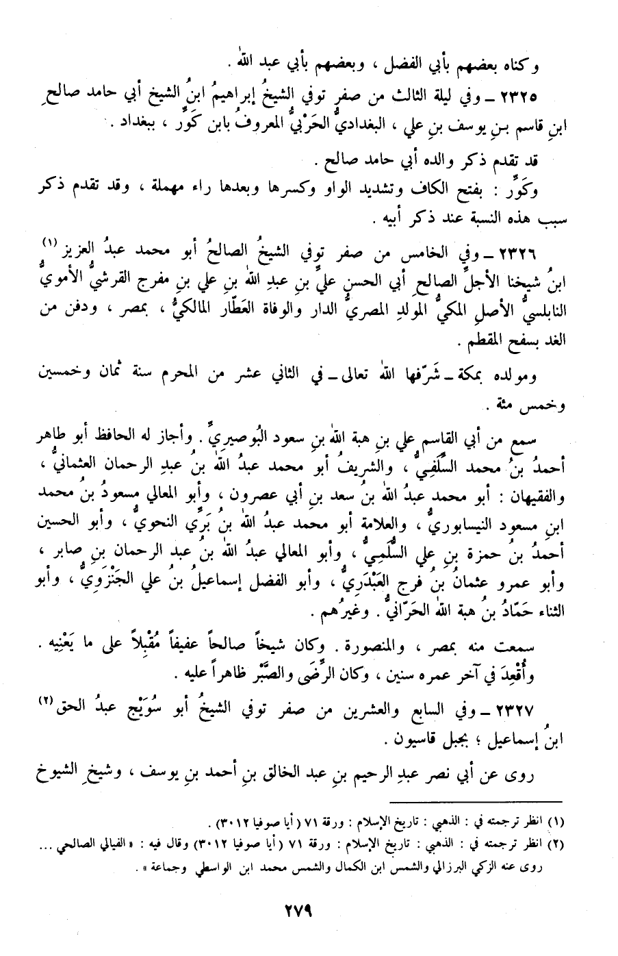 2325 - وفي ليلة الثالث من صفر توفي الشيخ إبراهيم ابن الشيخ أبي حامد صالح بن قاسم بن يوسف بن علي، البغدادي الحربي المعروف بابن كور، ببغداد.