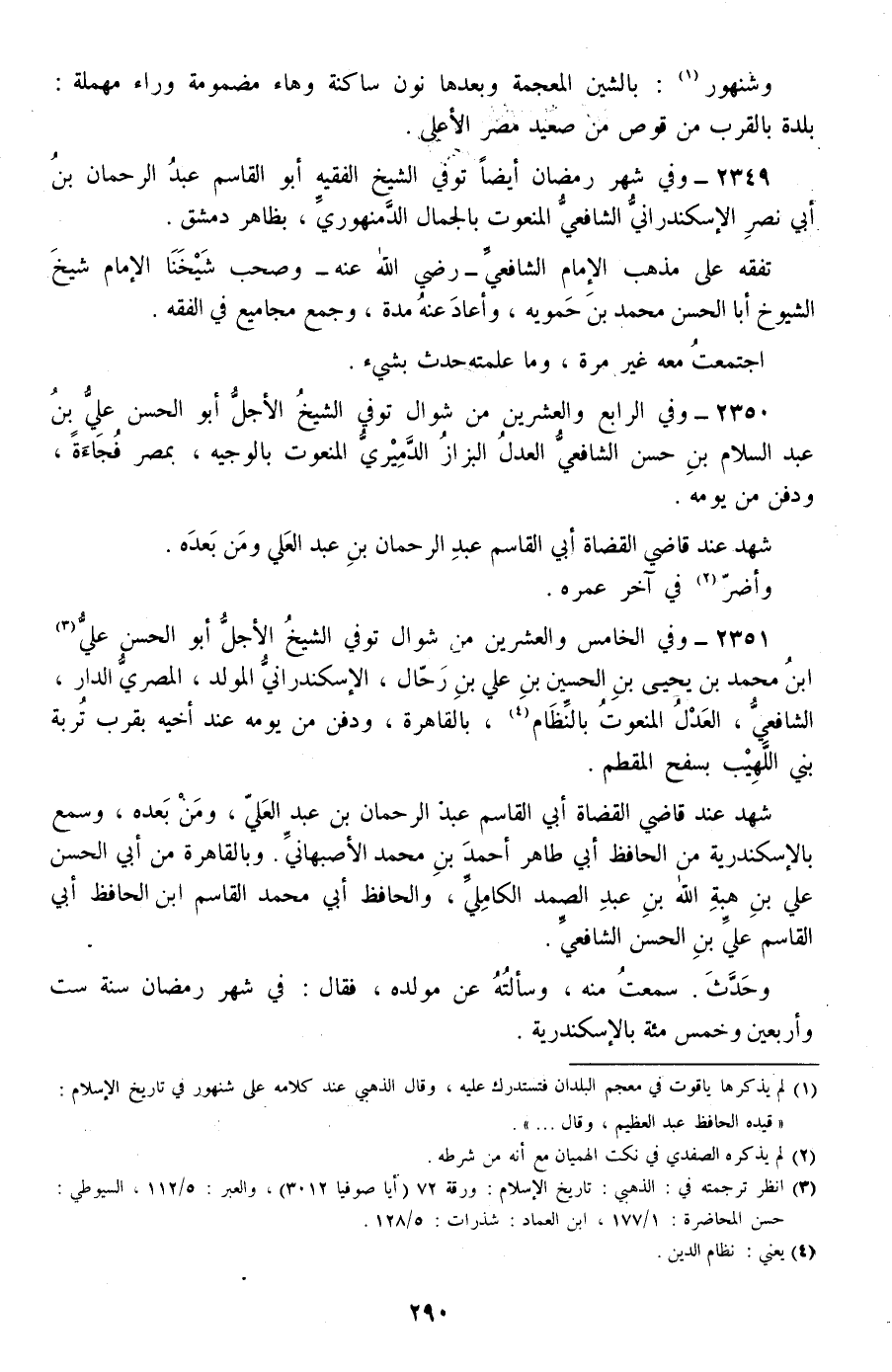 2349 - وفي شهر رمضان أيضا توفي الشيخ الفقيه أبو القاسم عبد الرحمان بن أبي نصر الإسكندراني الشافعي المنعوت بالجمال الدمنهوري، بظاهر دمشق.