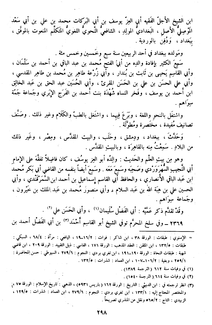2369 - وفي سلخ المحرم توفي الشيخ أبو القاسم أحمد بن أبي الفضل أحمد بن أبي غالب ابن السمذي البغدادي الكاتب الدقاق المعروف بالشاماتي، #299# ببغداد.