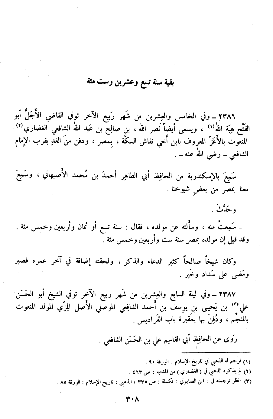 2387 - وفي ليلة السابع والعشرين من شهر ربيع الآخر توفي الشيخ أبو الحسن علي بن يحيى بن يوسف بن أحمد الشافعي الموصلي الأصل المزي المولد المنعوت بالمنجم، ودفن بها بمقبرة باب الفراديس.