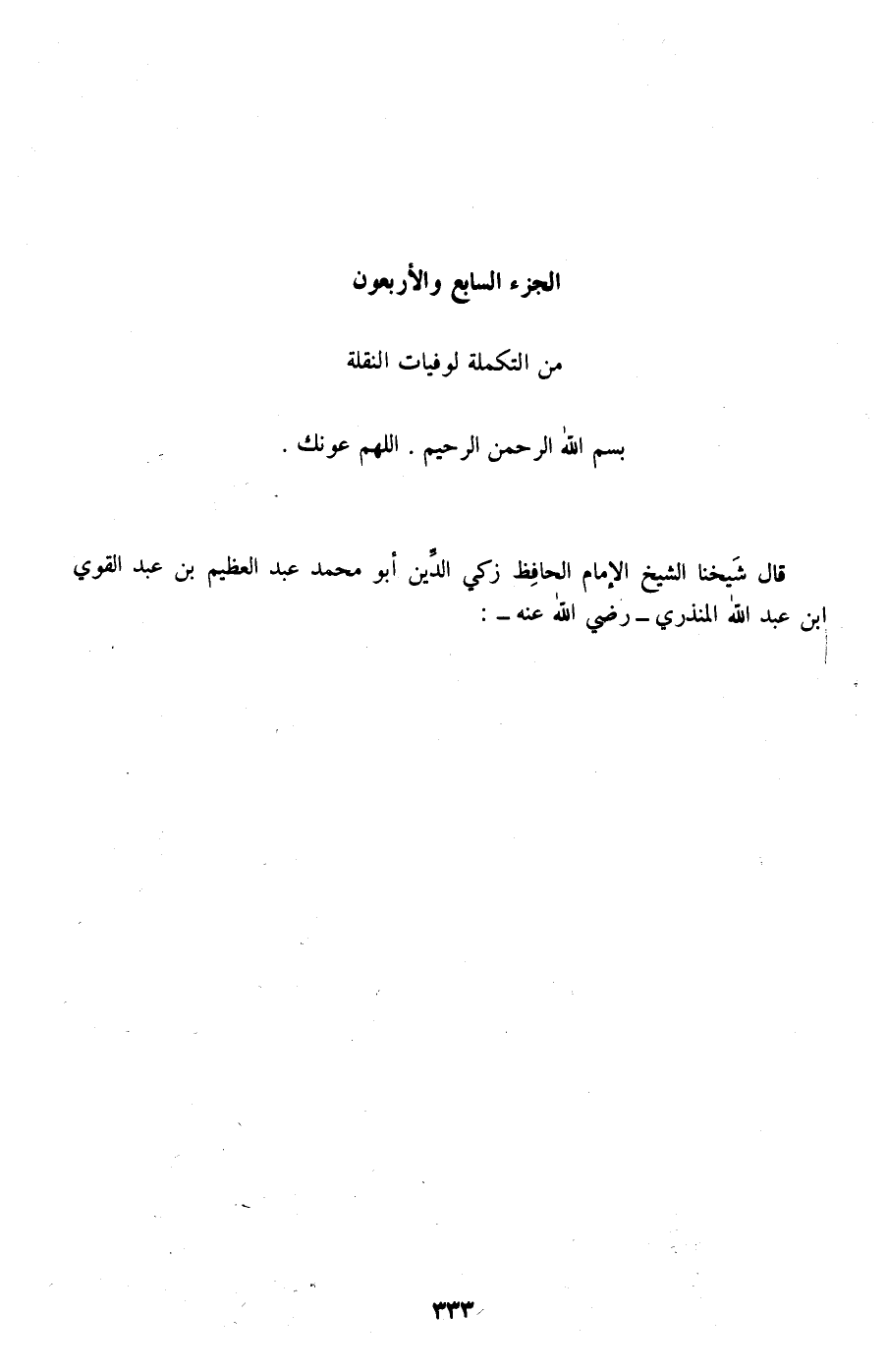 قال شيخنا الشيخ الإمام الحافظ زكي الدين أبو محمد عبد العظيم بن عبد القوي بن عبد الله المنذري -رضي الله عنه-: