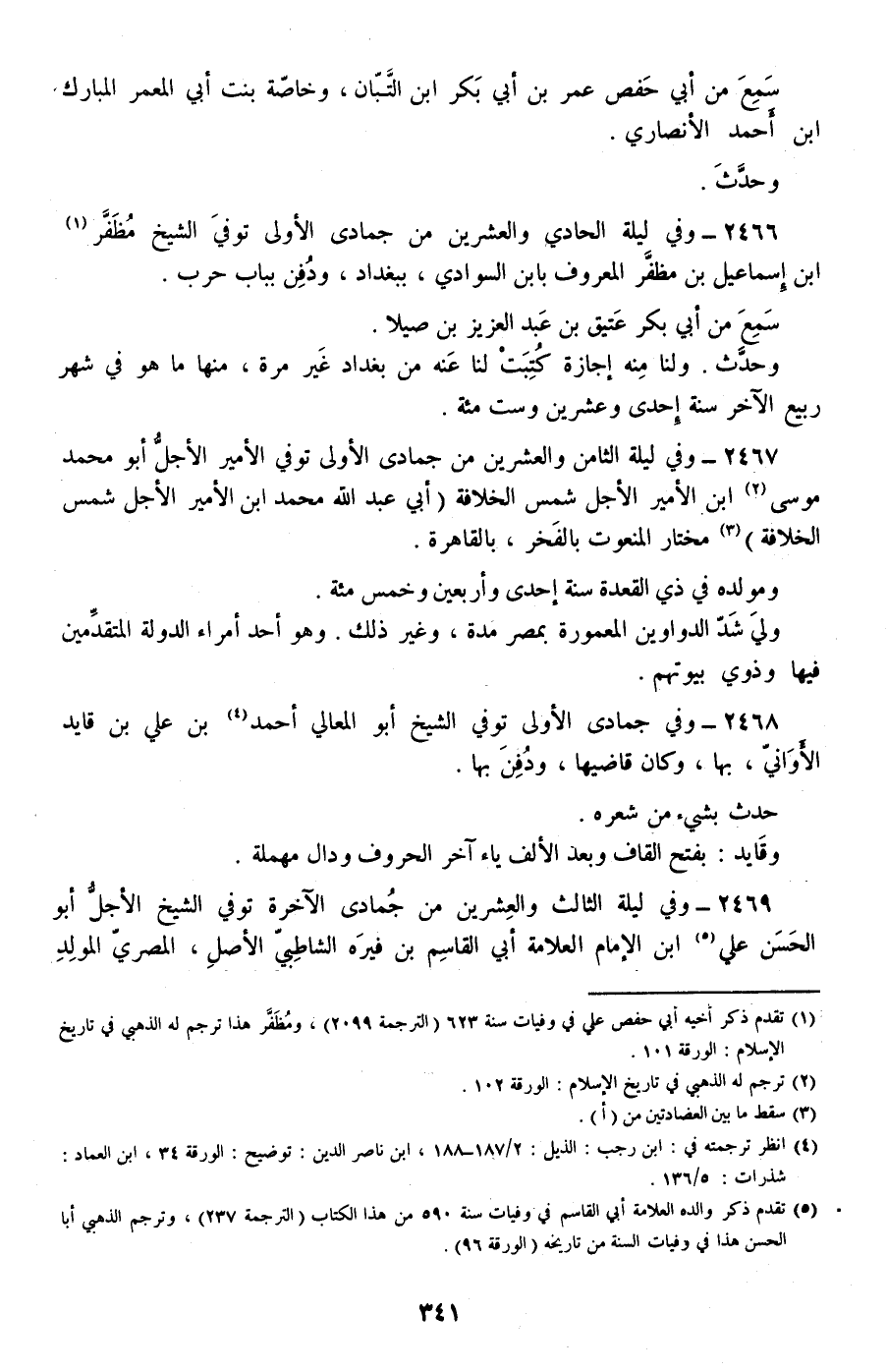 2466 - وفي ليلة الحادي والعشرين من جمادى الأولى توفي الشيخ مظفر بن إسماعيل بن مظفر المعروف بابن السوادي، ببغداد، ودفن بباب حرب.
