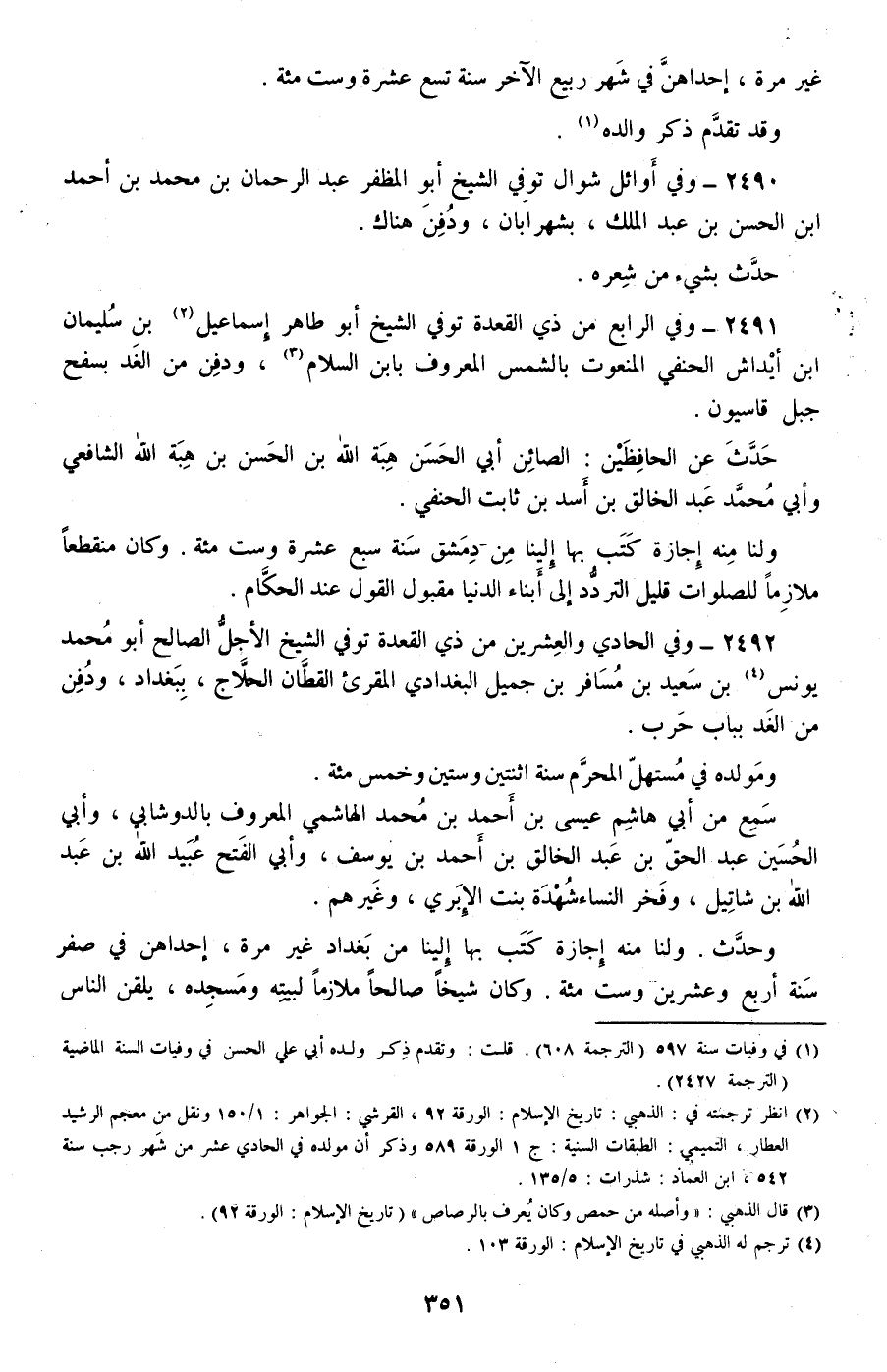 2492 - وفي الحادي والعشرين من ذي القعدة توفي الشيخ الأجل الصالح أبو محمد يونس بن سعيد بن مسافر بن جميل البغدادي المقرئ القطان الحلاج، ببغداد، ودفن من الغد بباب حرب.