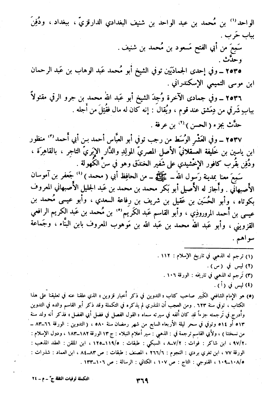 2536 - وفي جمادى الآخرة وجد الشيخ أبو عبد الله محمد بن جرو الرقي مقتولا بباب شرقي من دمشق عند قوم، ويقال: إنه كان له مال فقتل من أجله.