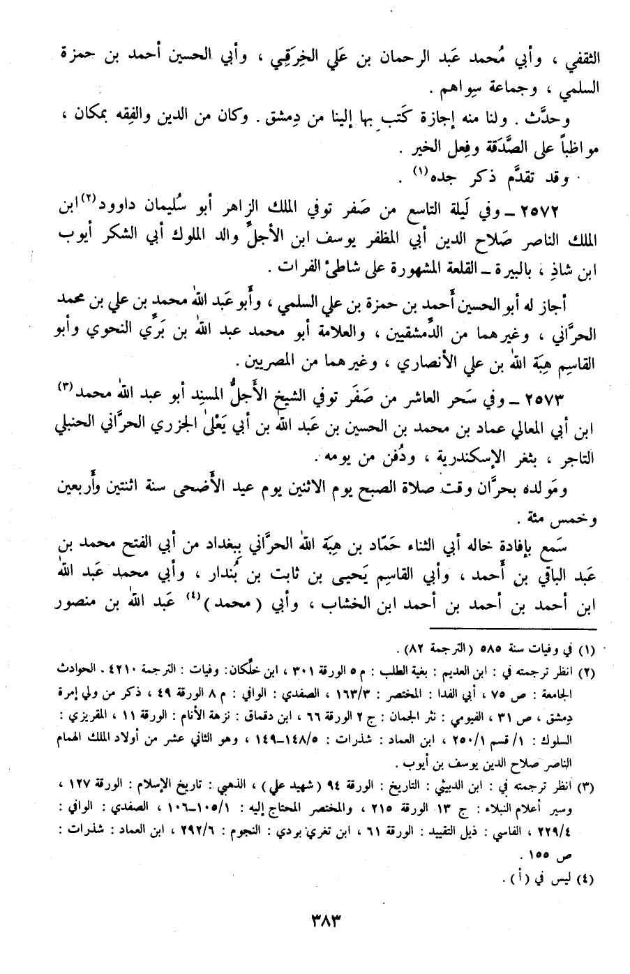 2573 - وفي سحر العاشر من صفر توفي الشيخ الأجل المسند أبو عبد الله محمد بن أبي المعالي عماد بن محمد بن الحسين بن عبد الله بن أبي يعلى الجزري الحراني الحنبلي التاجر، بثغر الإسكندرية، ودفن من يومه.