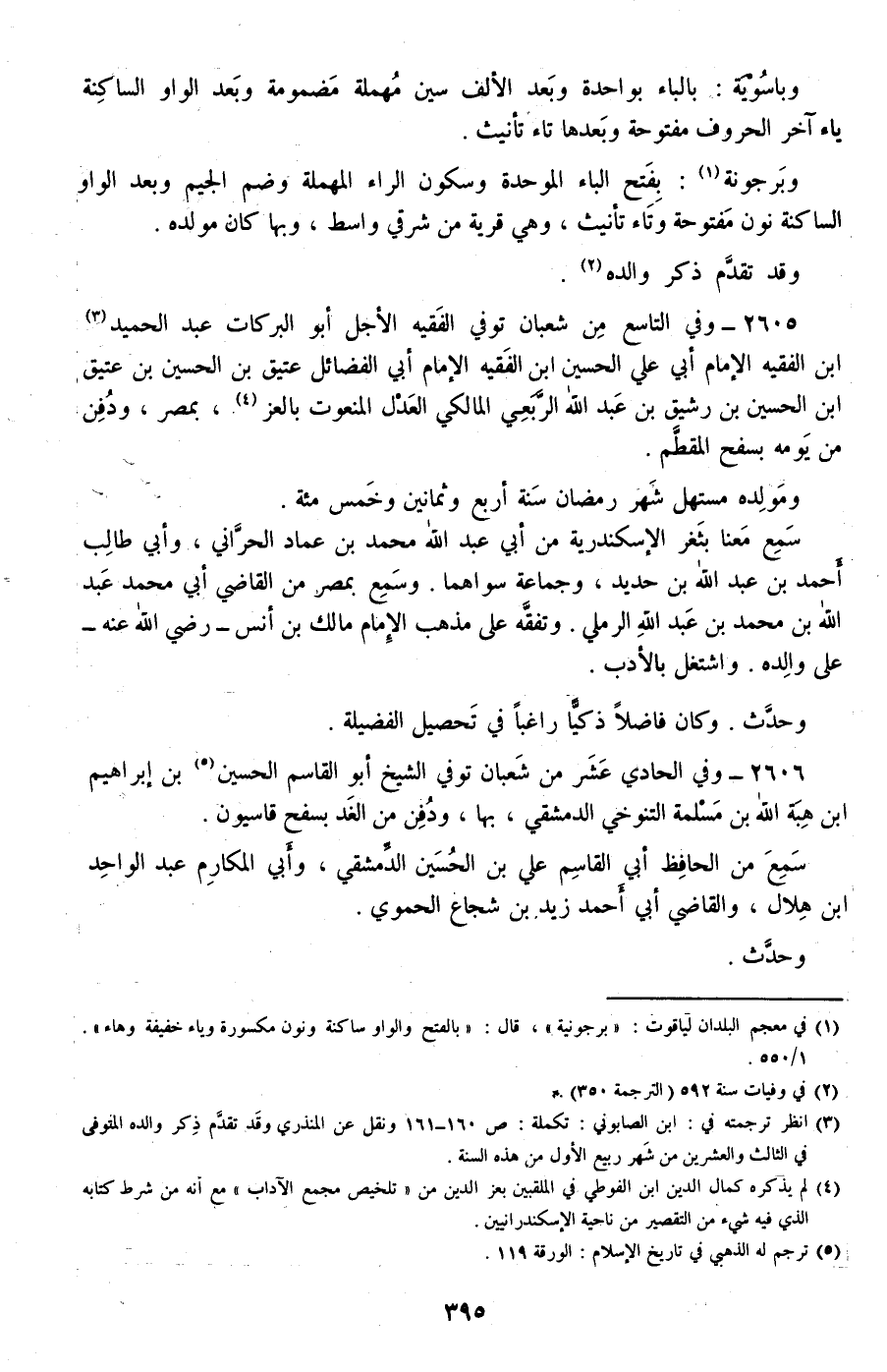 2605 - وفي التاسع من شعبان توفي الفقيه الأجل أبو البركات عبد الحميد ابن الفقيه الإمام أبي علي الحسين ابن الفقيه الإمام أبي الفضائل عتيق بن الحسين بن عتيق بن الحسين بن رشيق بن عبد الله الربعي المالكي العدل المنعوت بالعز، بمصر، ودفن من يومه بسفح المقطم.