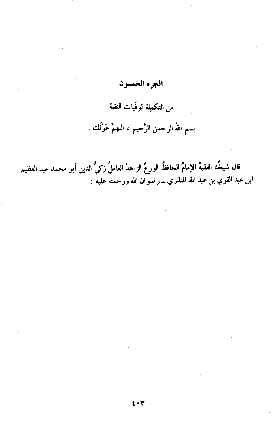 قال شيخنا الفقيه الإمام الحافظ الورع الزاهد العامل زكي الدين أبو محمد عبد العظيم بن عبد القوي بن عبد الله المنذري -رضوان الله ورحمته عليه: