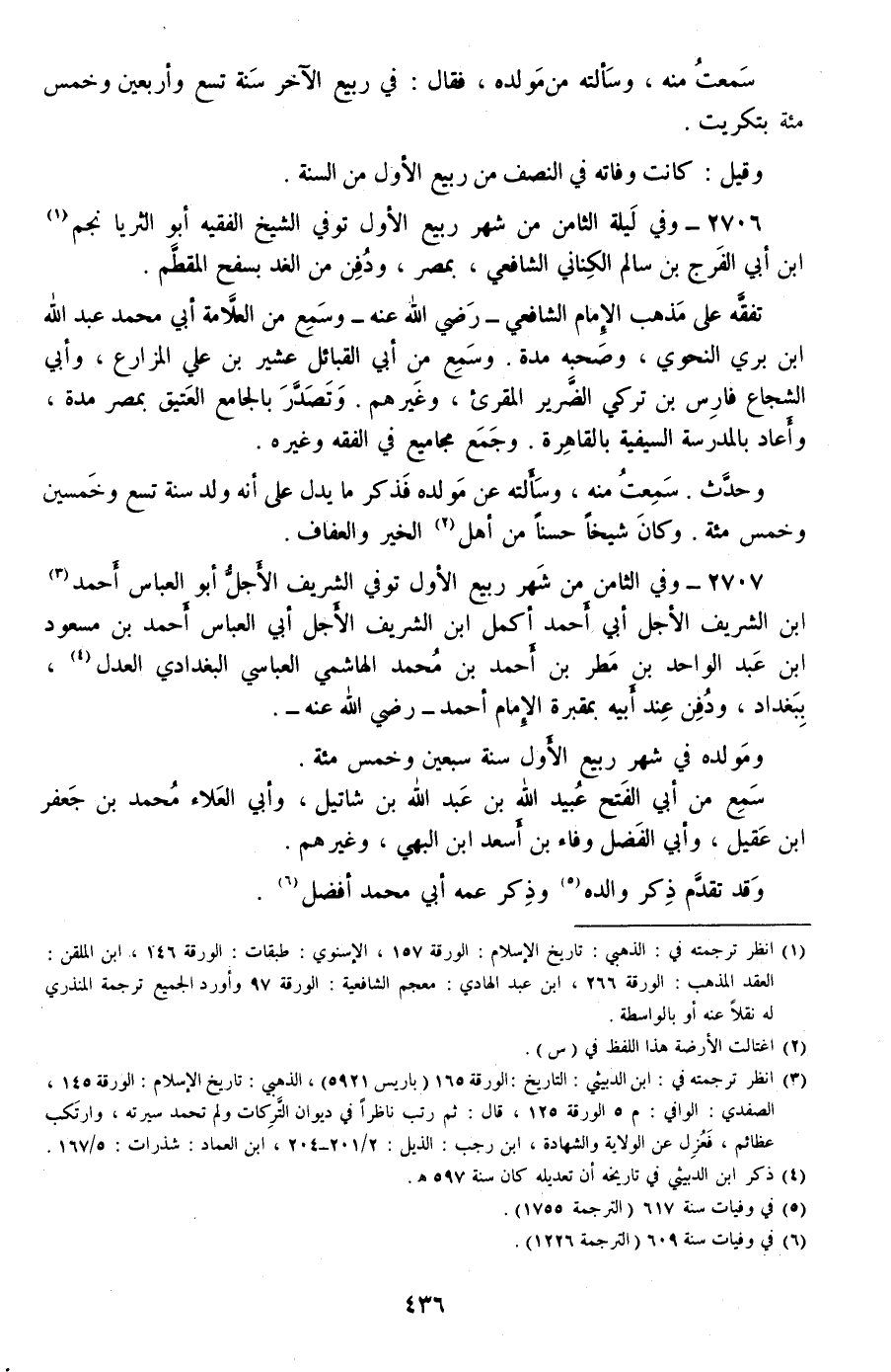2706 - وفي ليلة الثامن من شهر ربيع الأول توفي الشيخ الفقيه أبو الثريا نجم بن أبي الفرج بن سالم الكناني الشافعي، بمصر، ودفن من الغد بسفح المقطم.