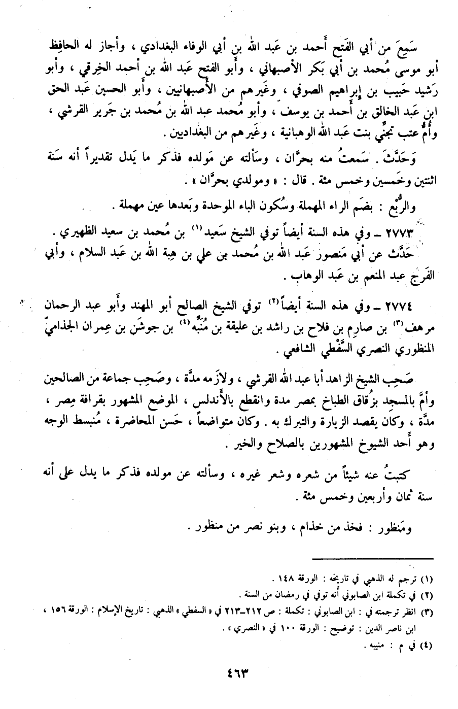 2774 - وفي هذه السنة أيضا توفي الشيخ الصالح أبو المهند وأبو عبد الرحمان مرهف بن صارم بن فلاح بن راشد بن عليقة بن منبه بن جوشن بن عمران الجذامي المنظوري النصري السفطي الشافعي