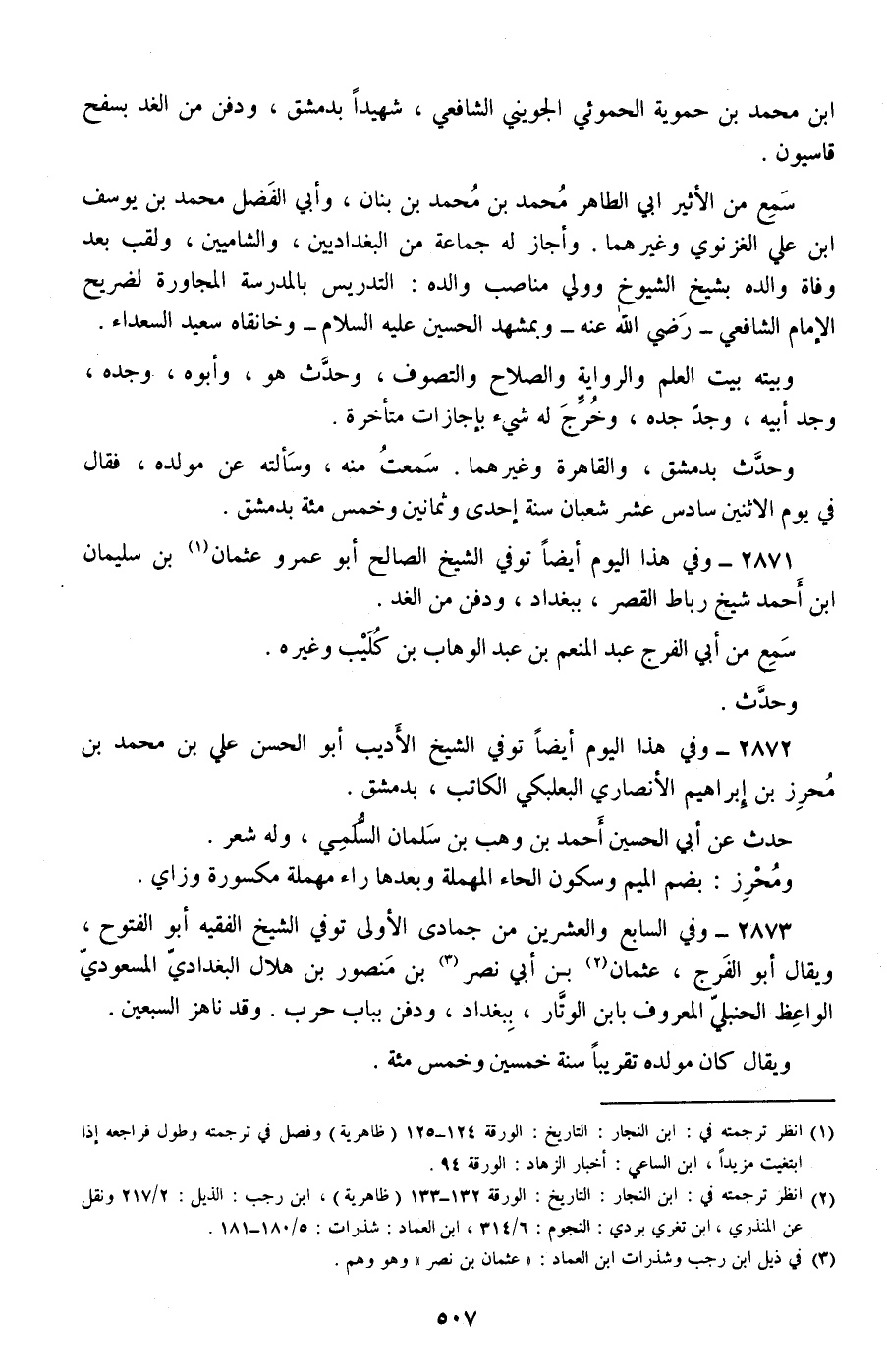 2871 - وفي هذا اليوم أيضا توفي الشيخ الصالح أبو عمرو عثمان بن سليمان بن أحمد شيخ رباط القصر، ببغداد، ودفن من الغد.