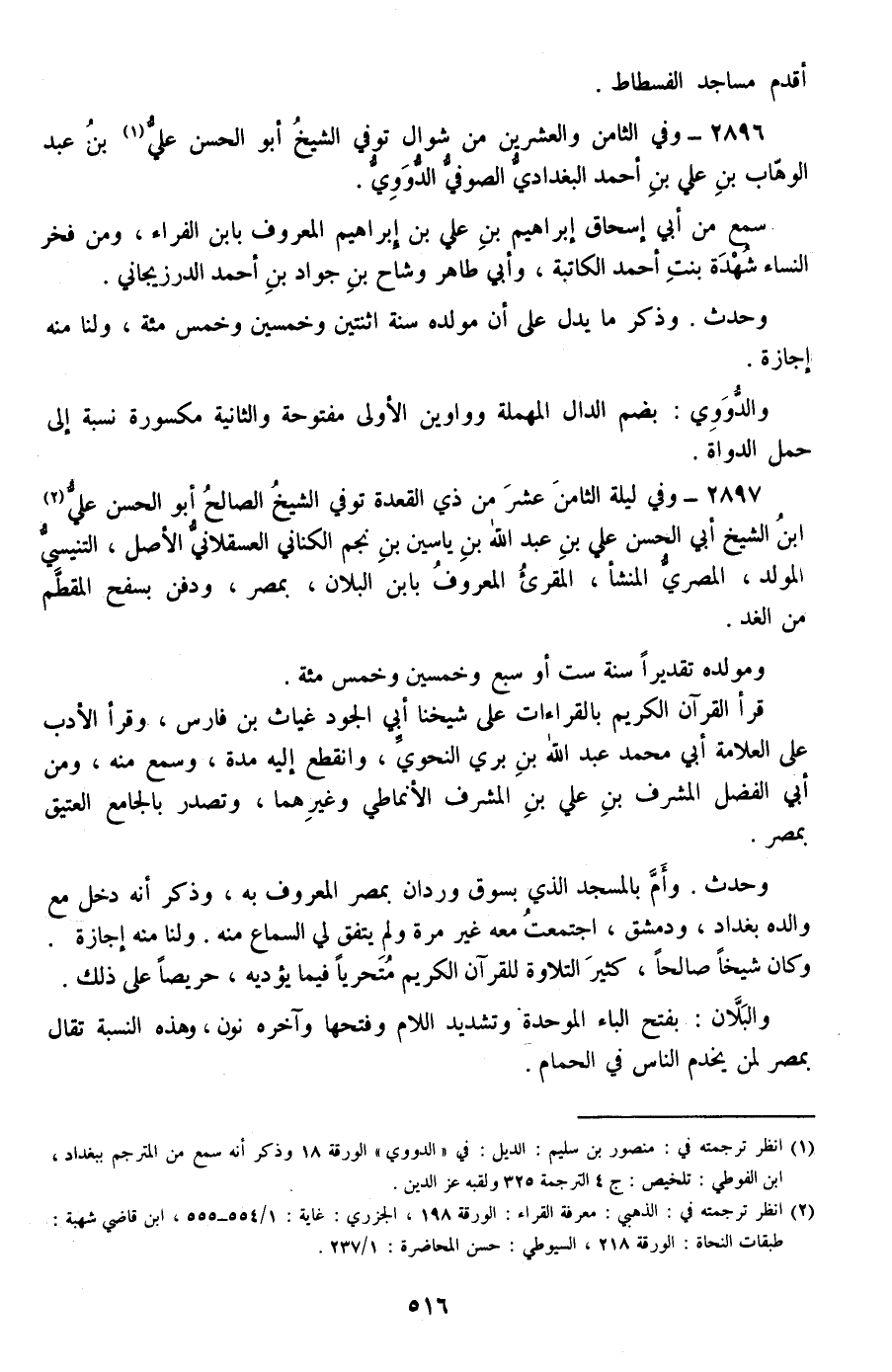 2896 - وفي الثامن والعشرين من شوال توفي الشيخ أبو الحسن علي بن عبد الوهاب بن علي بن أحمد البغدادي الصوفي الدووي