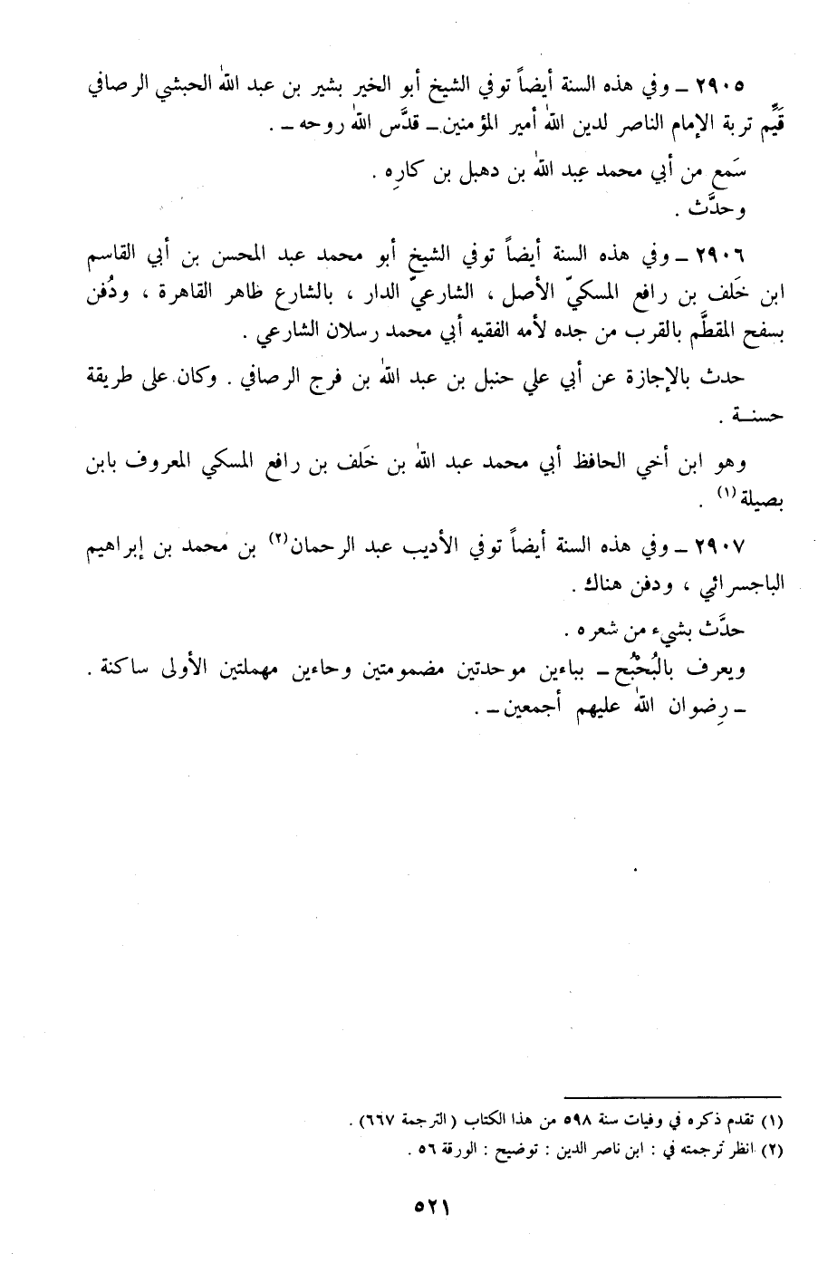 2905 - وفي هذه السنة أيضا توفي الشيخ أبو الخير بشير بن عبد الله الحبشي الرصافي قيم تربة الإمام الناصر لدين الله أمير المؤمنين -قدس الله روحه-