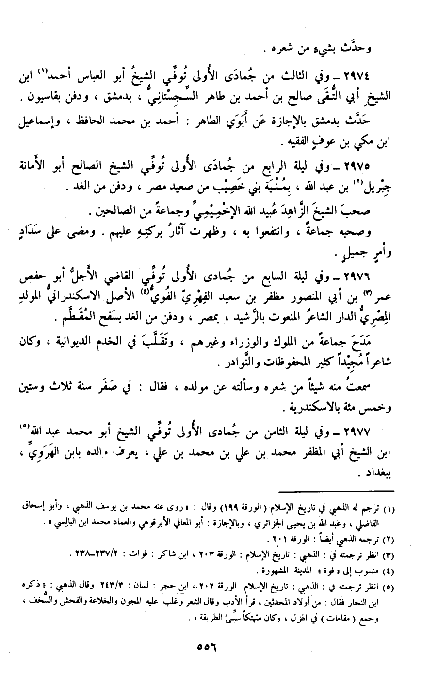 2977 - وفي ليلة الثامن من جمادى الأولى توفي الشيخ أبو محمد عبد الله ابن الشيخ أبي المظفر محمد بن علي بن محمد بن علي، يعرف والده بابن الهروي، ببغداد.