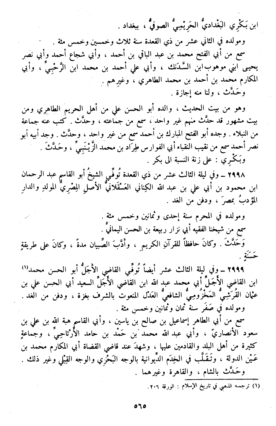 2998 - وفي ليلة الثالث عشر من ذي القعدة توفي الشيخ أبو القاسم عبد الرحمان بن محمود بن أبي علي بن عبد الله الكناني العسقلاني الأصل المصري المولد والدار المؤدب بمصر، ودفن من الغد.