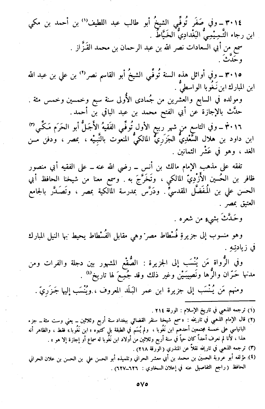 3016 - وفي التاسع من شهر ربيع الأول توفي الفقيه الأجل أبو الحرم مكي بن داود بن هلال السعدي الجزري المالكي المنعوت بالنبيه، بمصر، ودفن من الغد، وهو في عشر الثمانين.
