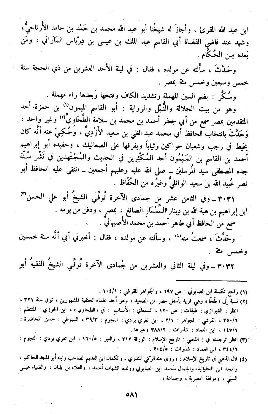 3031 - وفي الثامن عشر من جمادى الآخرة توفي الشيخ أبو علي الحسن بن إبراهيم بن هبة الله بن دينار السمسار الصائغ، بمصر، ودفن من يومه.