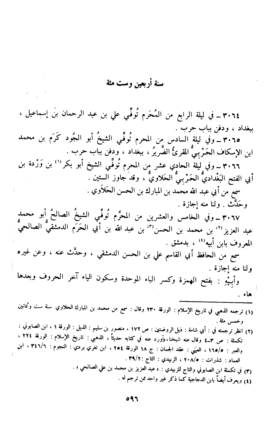 3067 - وفي الخامس والعشرين من المحرم توفي الشيخ الصالح أبو محمد عبد العزيز بن محمد بن الحسن بن عبد الله بن أبي الحرم الدمشقي الصالحي المعروف بابن أبيه، بدمشق.