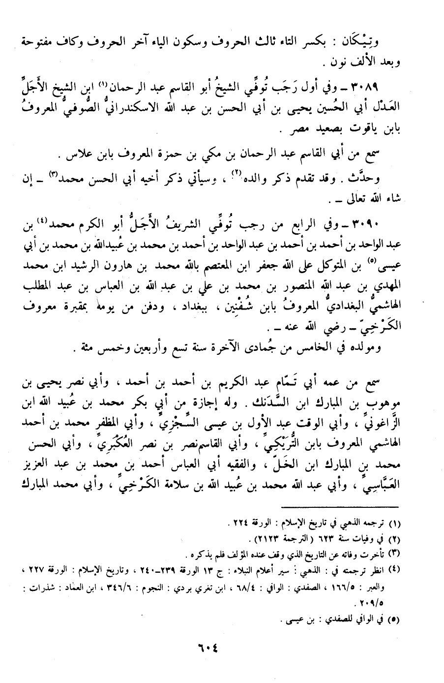 3089 - وفي أول رجب توفي الشيخ أبو القاسم عبد الرحمان ابن الشيخ الأجل العدل أبي الحسين يحيى بن أبي الحسن بن عبد الله الإسكندراني الصوفي المعروف بابن ياقوت بصعيد مصر.