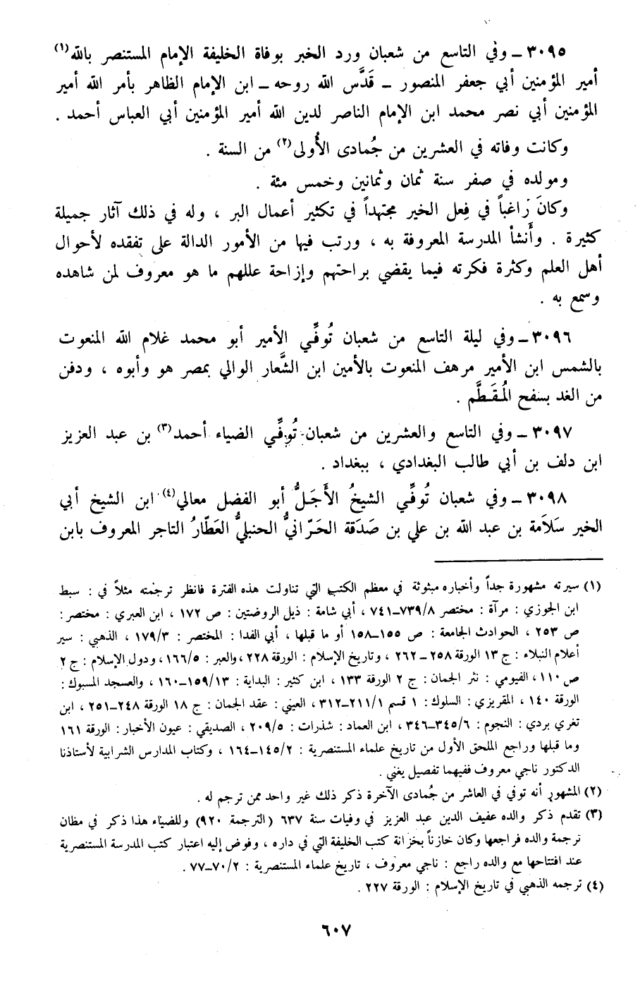3097 - وفي التاسع والعشرين من شعبان توفي الضياء أحمد بن عبد العزيز بن دلف بن أبي طالب البغدادي، ببغداد.
