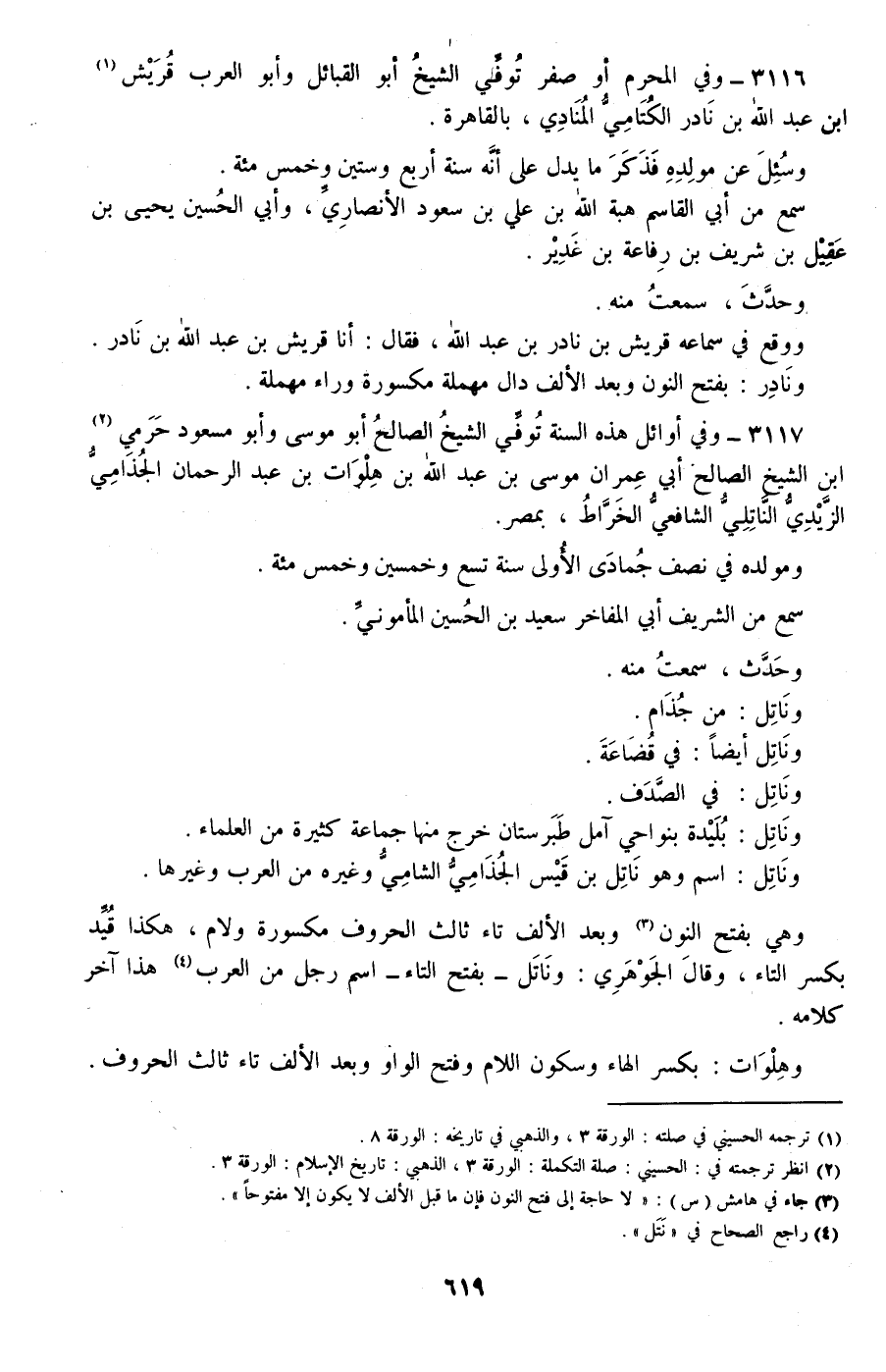 3117 - وفي أوائل هذه السنة توفي الشيخ الصالح أبو موسى وأبو مسعود حرمي ابن الشيخ الصالح أبي عمران موسى بن عبد الله بن هلوات بن عبد الرحمان الجذامي الزيدي الناتلي الشافعي الخراط، بمصر.