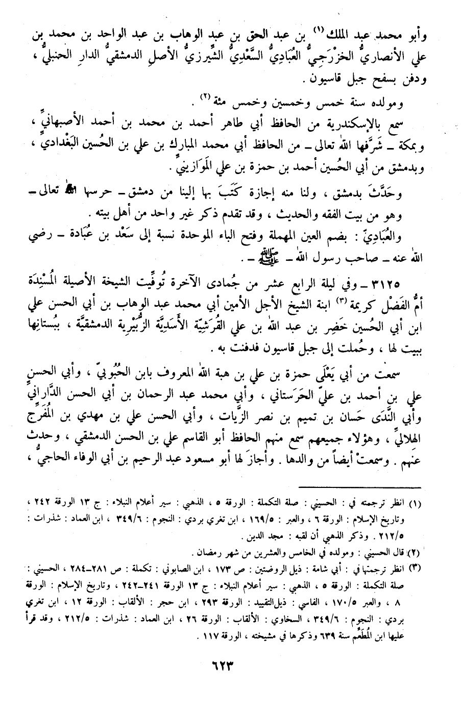 3125 - وفي ليلة الرابع عشر من جمادى الآخرة توفيت الشيخة الأصيلة المسندة أم الفضل كريمة ابنة الشيخ الأجل الأمين أبي محمد عبد الوهاب بن أبي الحسن علي بن أبي الحسين خضر بن عبد الله بن علي القرشية الأسدية الزبيرية الدمشقية، ببستانها ببيت لها، وحملت إلى جبل قاسيون فدفنت به.