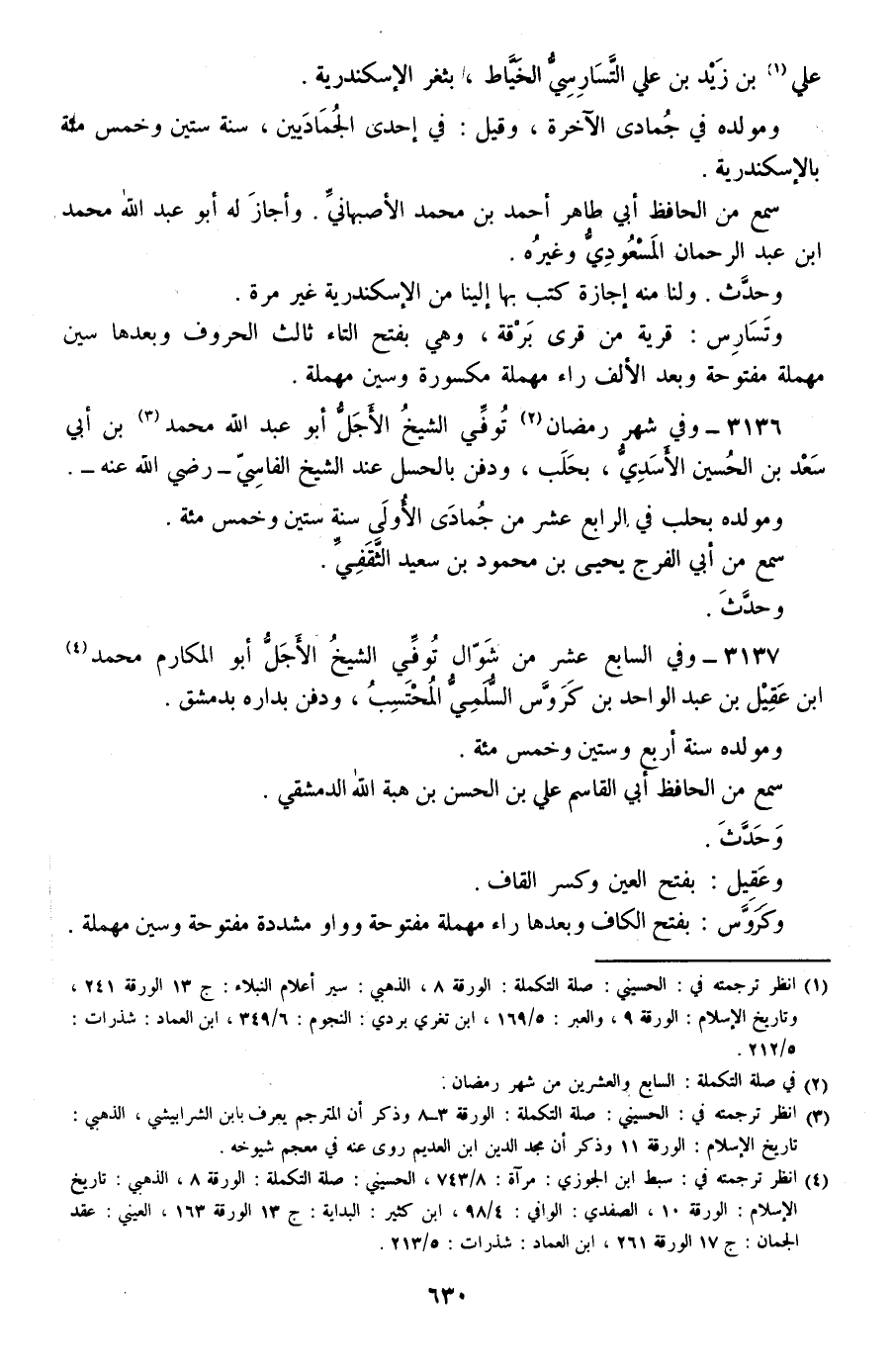 3136 - وفي شهر رمضان توفي الشيخ الأجل أبو عبد الله محمد بن أبي سعد بن الحسين الأسدي، بحلب، ودفن بالحسل عند الشيخ الفاسي -رضي الله عنه-.