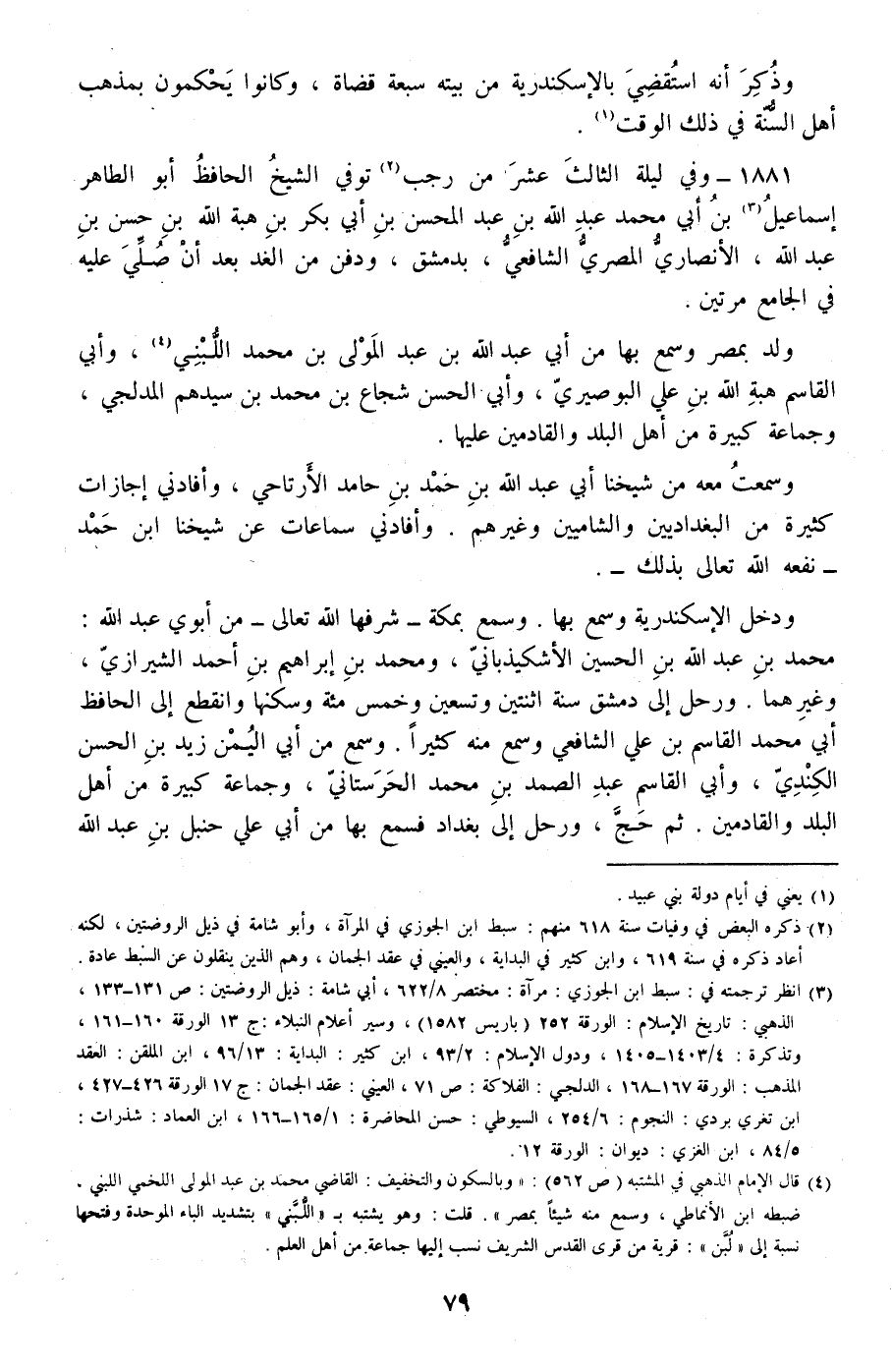 1881 - وفي ليلة الثالث عشر من رجب توفي الشيخ الحافظ أبو الطاهر إسماعيل بن أبي محمد عبد الله بن عبد المحسن بن أبي بكر بن هبة الله بن حسن بن عبد الله، الأنصاري المصري الشافعي، بدمشق، ودفن من الغد بعد أن صلي عليه في الجامع مرتين.
