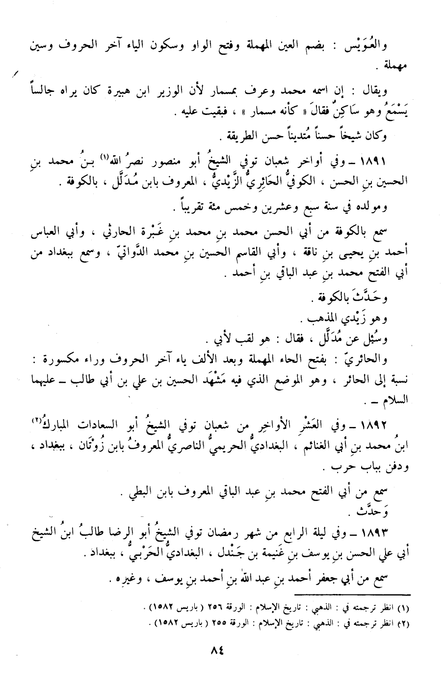 1892 - وفي العشر الأواخر من شعبان توفي الشيخ أبو السعادات المبارك بن محمد بن أبي الغنائم، البغدادي الحريمي الناصري المعروف بابن زوتان، ببغداد، ودفن بباب حرب.