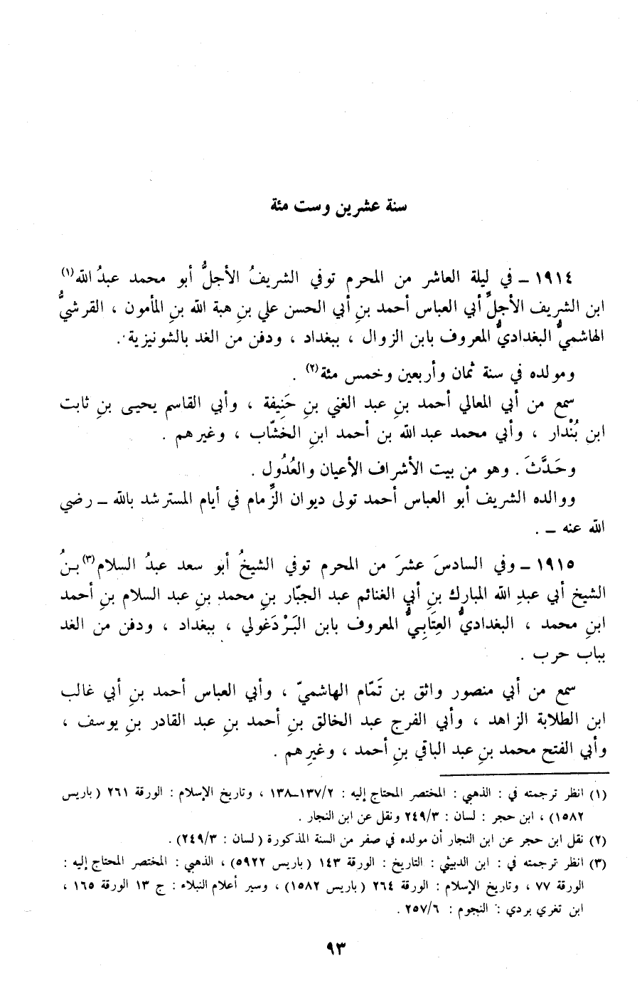 1914 - وفي ليلة العاشر من المحرم توفي الشريف الأجل أبو محمد عبد الله ابن الشريف الأجل أبي العباس أحمد بن أبي الحسن علي بن هبة الله بن المأمون، القرشي الهاشمي البغدادي المعروف بابن الزوال، ببغداد، ودفن من الغد بالشونيزية.