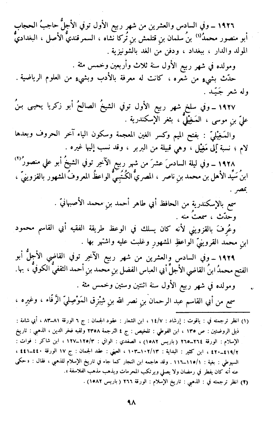 1926 - وفي السادس والعشرين من شهر ربيع الأول توفي الأجل حاجب الحجاب أبو منصور محمد بن سلمان بن قتلمش بن تركانشاه، السمرقندي الأصل، البغدادي المولد والدار، ببغداد، ودفن من الغد بالشونيزية.