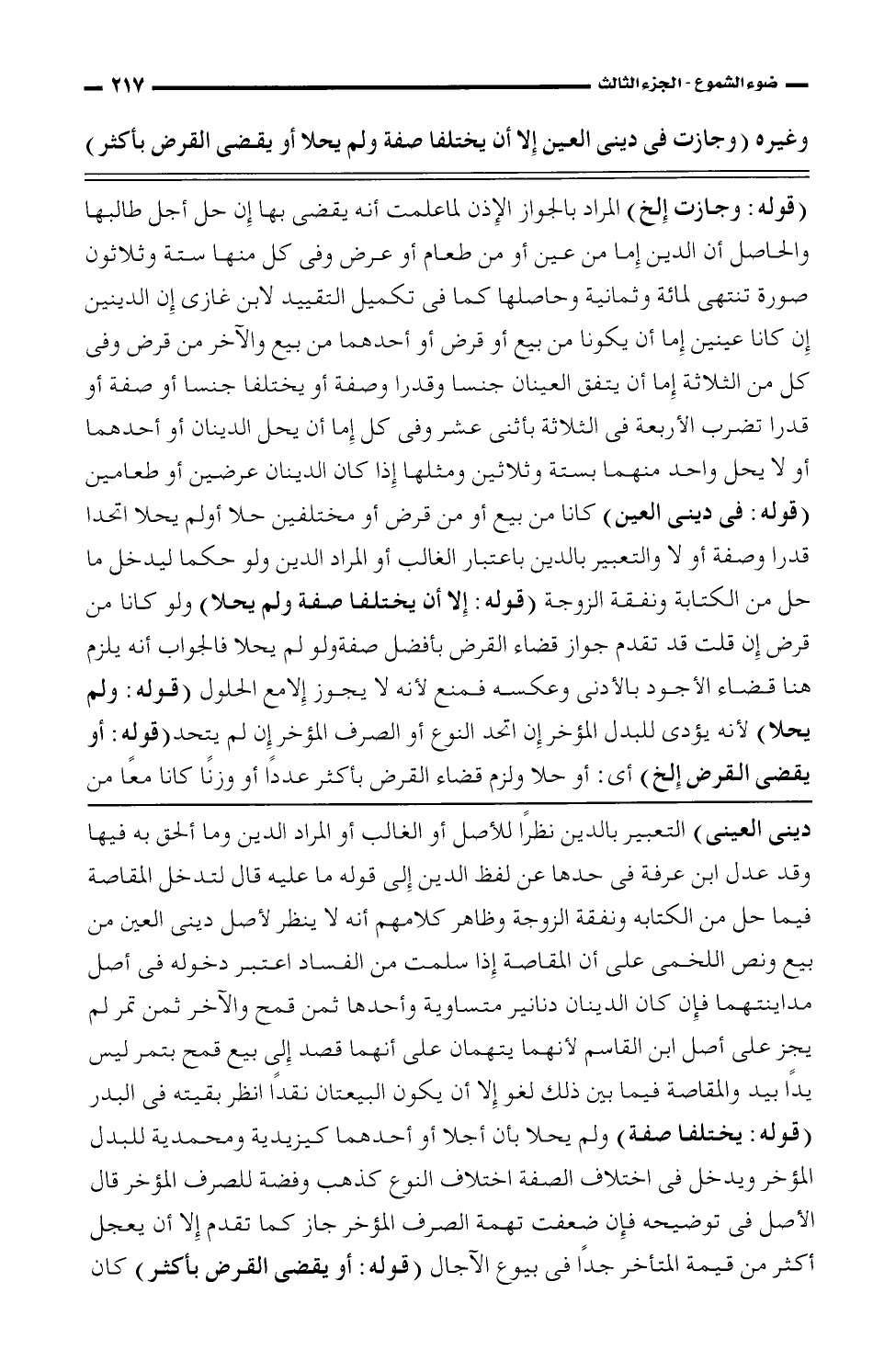 وغيره (وجازت فى دينى العين إلا أن يختلفا صفة ولم يحلا أو يقضى القرض بأكثر)