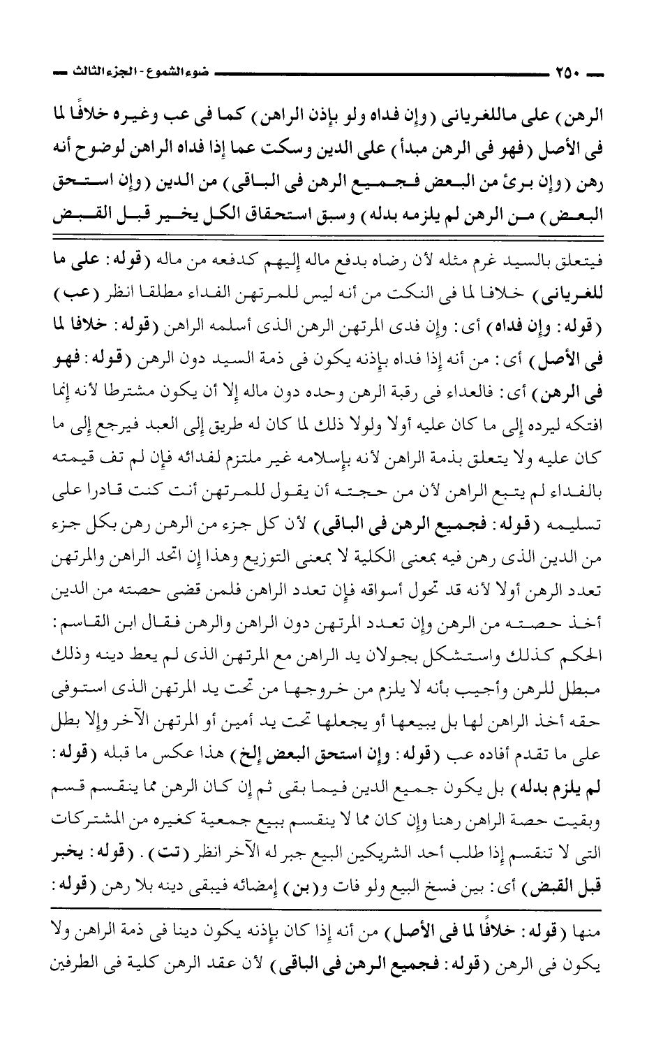 منهما (قوله: خلافًا لما فى الأصل) من أنه إذا كان بإذنه يكون دينا فى ذمة الراهن ولا يكون فى الرهن (قوله: فجميع الرهن فى الباقى) لأن عقد الرهن كلية فى الطرفين