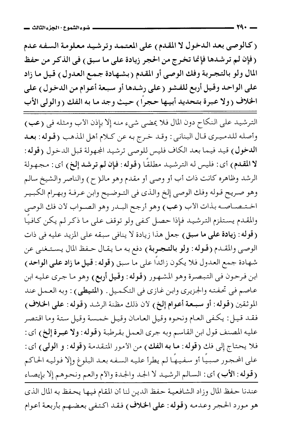 عندنا حفظ المال وزاد الشافعية حفظ الدين لنا أن المقام فيها يحفظ به المال الذى هو مورد الحجر وعدمه (قوله: على الخلاف) فقد اكتفى بعضهم بأربعة أعوام