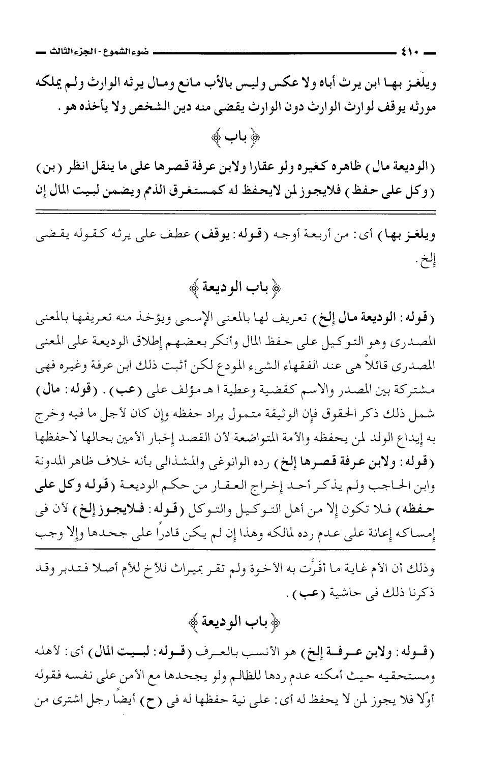 (قوله: الوديعة مال إلخ) تعريف لها بالمعنى الإسمى ويؤخذ منه تعريفها بالمعنى المصدرى وهو التوكيل على حفظ المال وأنكر بعضهم إطلاق الوديعة على المعنى المصدرى قائلًا هى عند الفقهاء الشء المودع لكن أثبت ذلك ابن عرفة وغيره فهى مشتركة بين المصدر والاسم كقضية وعطية اهـ مؤلف على (عب). (قوله: مال) شمل ذلك ذكر الحقوق فإن الوثيقة متمول يراد حفظه وإن كان لأجل ما فيه وخرج به إيداع الولد لمن يحفظه والأمة المتواضعة لأن القصد إخبار الأمين بحالها لا حفظها (قوله: ولابن عرفة قصرها إلخ) رده الوانوغى والمشذالى بأنه خلاف ظاهر المدونة وابن الحاجب ولم يذكر أحد إخراج العقار من حكم الوديعة (قوله وكل على حفظه) فلا تكون إلامن أهل التوكيل والتوكل (قوله: فلا يجوز إلخ) لأن فى إمساكه إعانة على عدم رده لمالكه وهذا إن لم يكن قادرًا على جحدها وإلا وجب