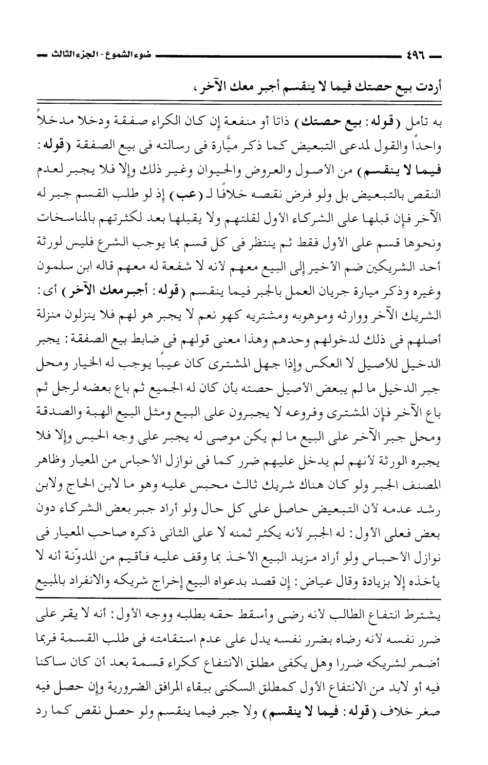 أردت بيع حصتك فيما لا ينقسم أجبر معك الآخر,