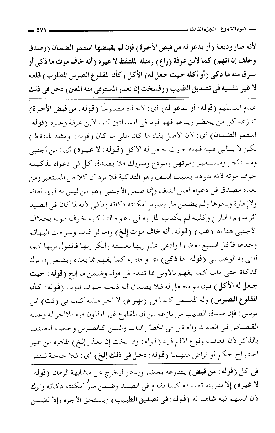 فى كل (قوله: من قبض) يتنازعه يحضر ويدعو ليخرج عن مشابهة الرهان (قوله: لا غيره) إلا لقرينة تصدقه كما تقدم فى الصيد وضمن مارٌّ أمكنته ذكاته وترك لأن السهم فيه شاهد له (قوله: فى تصديق الطبيب) ويستحق الأجرة وإلا لضمن