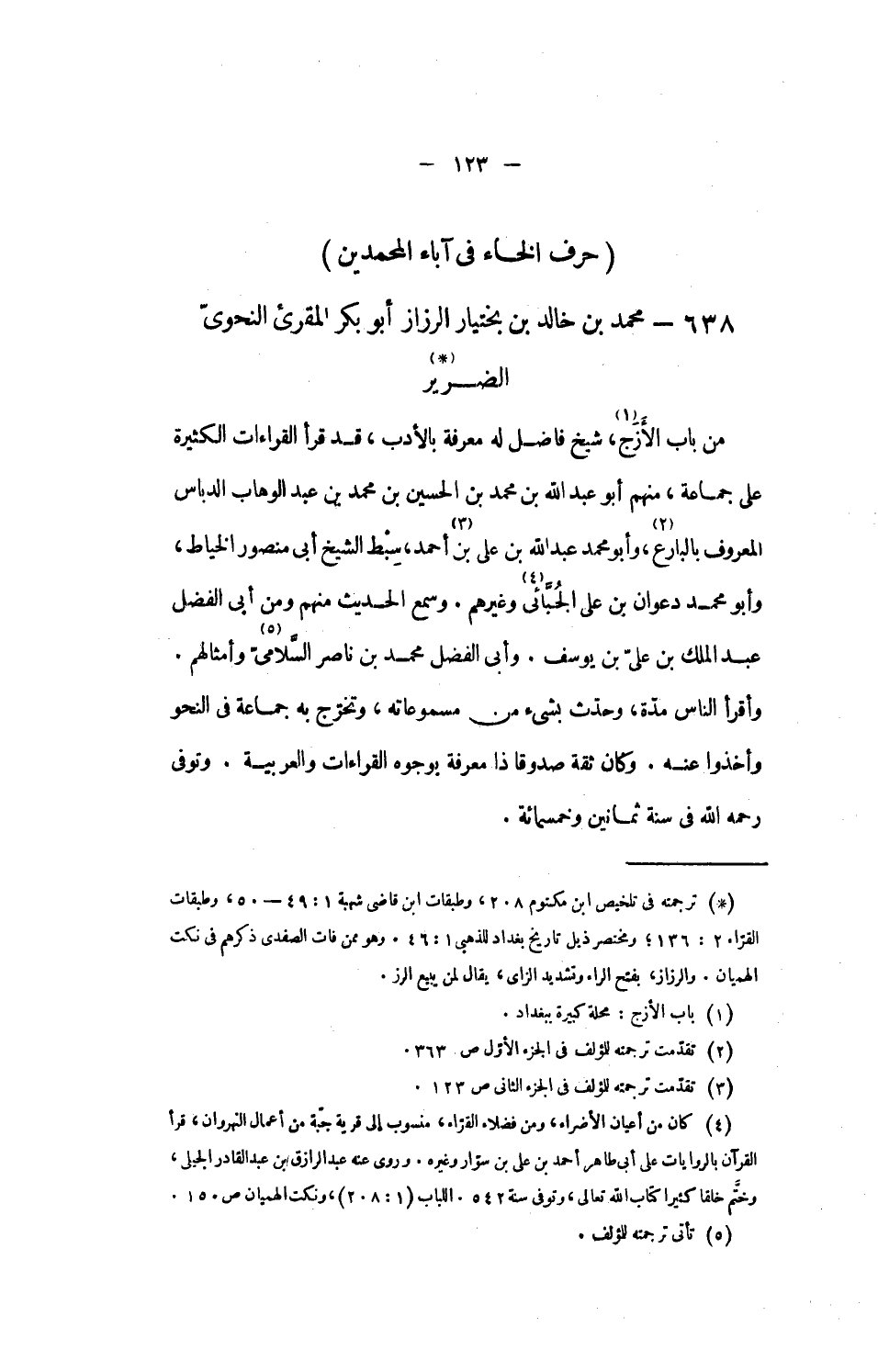 638 - محمد بن خالد بن بختيار الرزاز أبو بكر المقرىء النحوىّ الضرير «1»