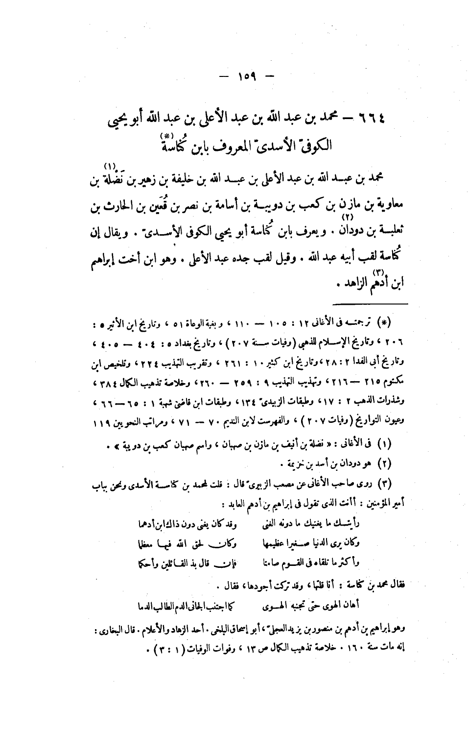 664 - محمد بن عبد الله بن عبد الأعلى بن عبد الله أبو يحيى الكوفىّ الأسدىّ المعروف بابن كناسة «1»