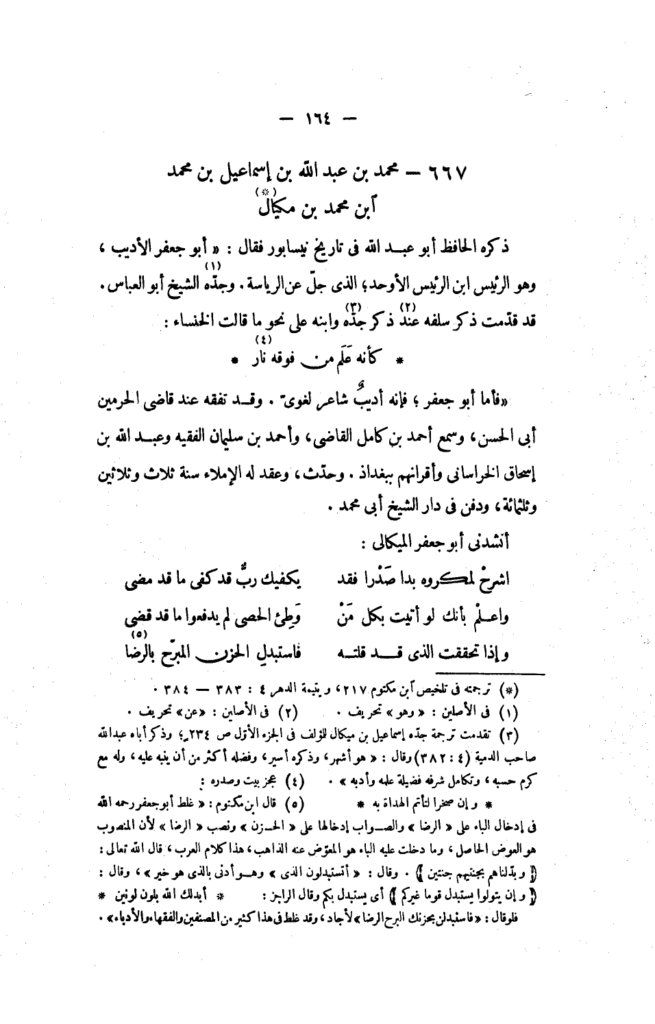 [3] تقدمت ترجمة جدّه إسماعيل بن ميكال للمؤلف فى الجزء الأوّل ص 234؛ وذكر أباه عبد الله صاحب الدمية (4: 382) وقال: «هو أشهر، وذكره أسير، وفضله أكثر من أن ينبه عليه، وله مع كرم حسبه، وتكامل شرفه فضيلة علمه وأدبه».