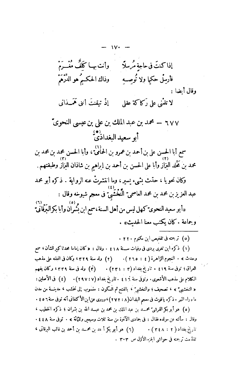 677 - محمد بن عبد الملك بن على بن عيسى النحوىّ أبو سعيد البغداذىّ «1»