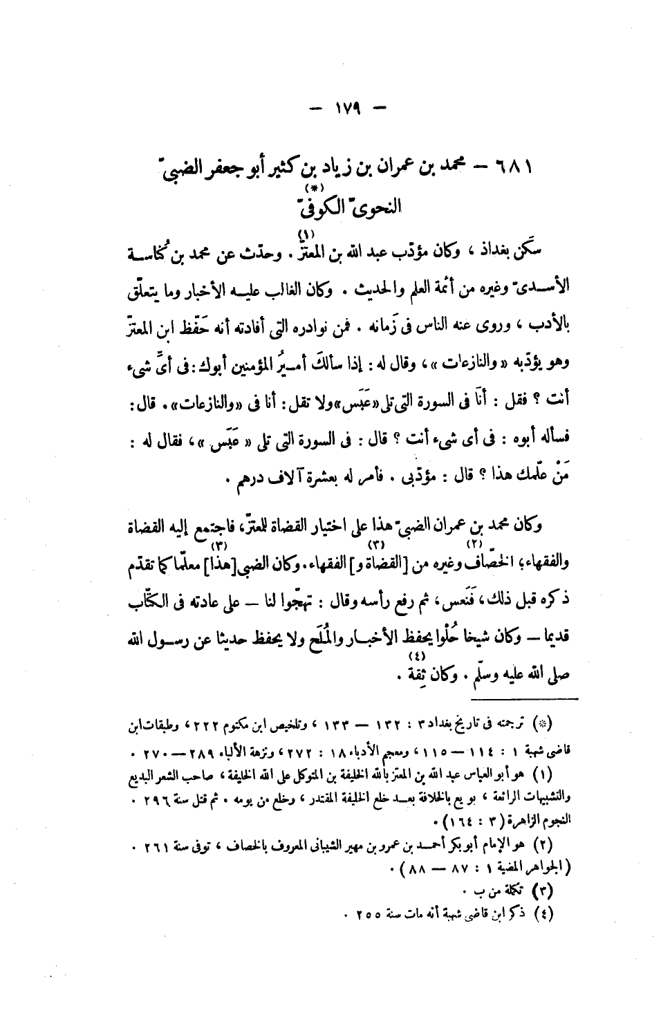 681 - محمد بن عمران بن زياد بن كثير أبو جعفر الضبىّ النحوىّ الكوفىّ «1»
