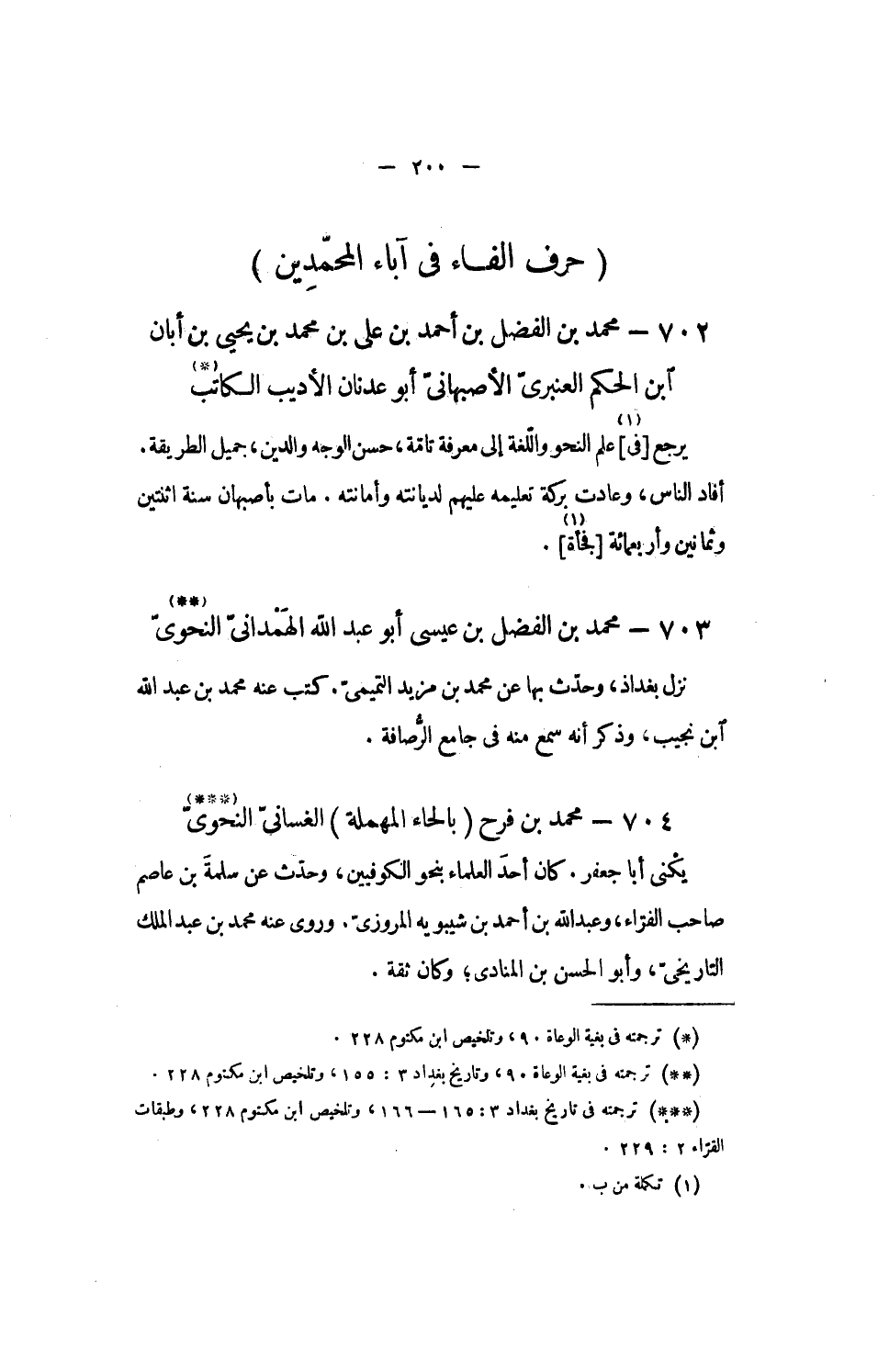 703 - محمد بن الفضل بن عيسى أبو عبد الله الهمدانىّ النحوىّ «2»