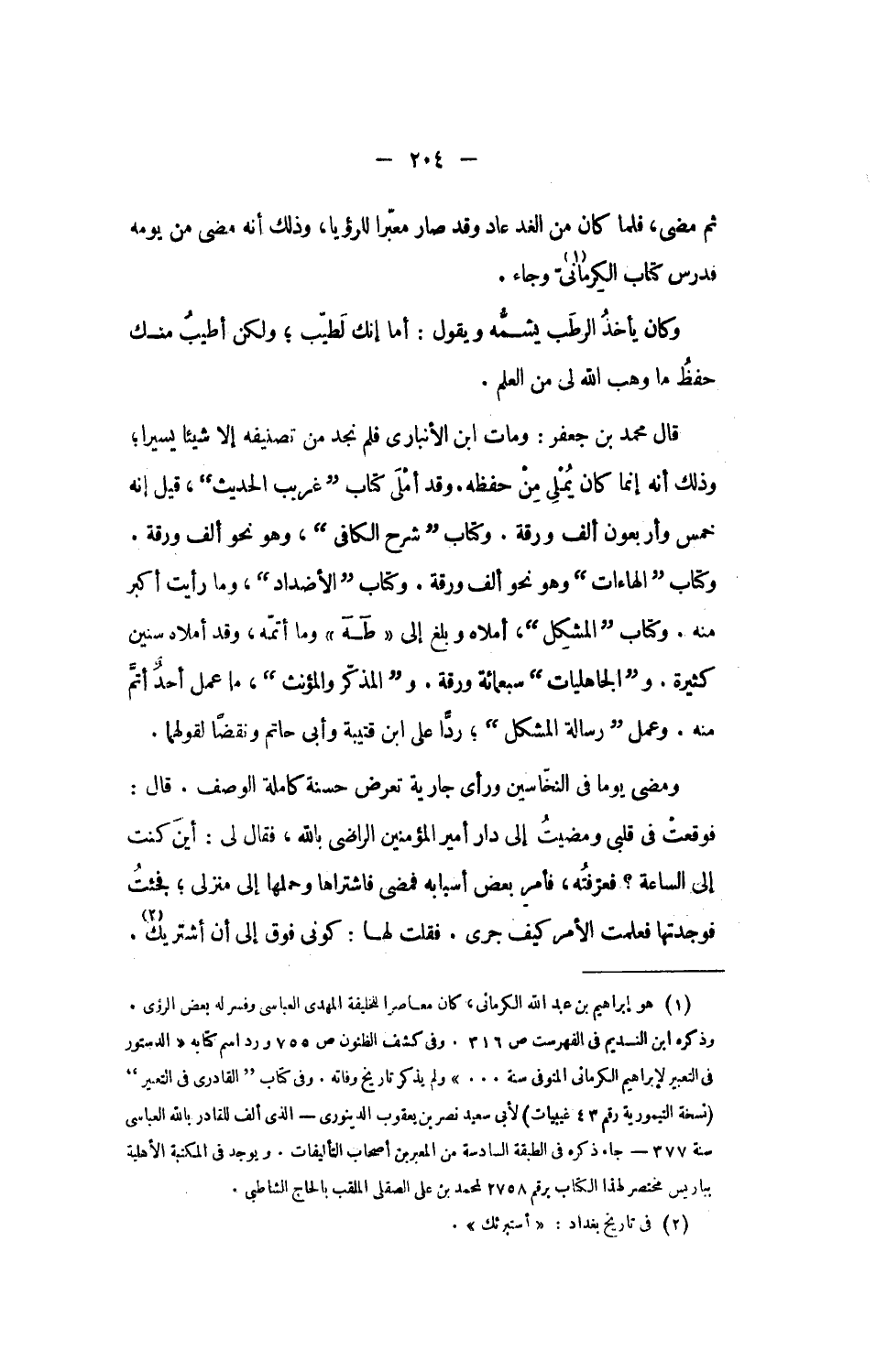 ثم مضى، فلما كان من الغد عاد وقد صار معبّرا للرؤيا، وذلك أنه مضى من يومه فدرس كتاب الكرمانىّ [1] وجاء.