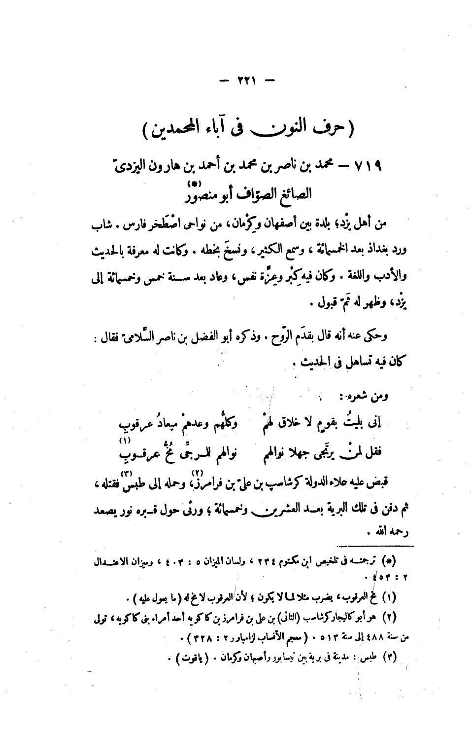 719 - محمد بن ناصر بن محمد بن أحمد بن هارون اليزدىّ الصائغ الصوّاف أبو منصور «1»